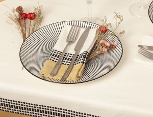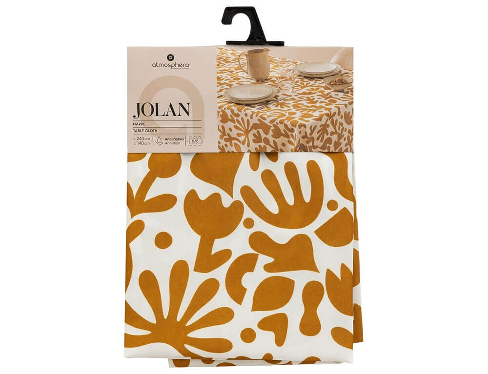 Ανανεώστε και αναδείξτε την τραπεζαρία σας με το τραπεζομάντηλο Jolan από την Atmosphera. Με μοτίβα σε μουσταρδί απόχρωση θα δώσει μια μοντέρνα αίσθηση στο χώρο σας. Είναι κατασκευασμένο από 100% πολυεστέρα και διαθέτει επίστρωση, η οποία δεν λεκιάζει. Είναι πολύ πρακτικό, εύχρηστο και καθαρίζεται εύκολα. Για καλύτερη φροντίδα συνίσταται πλύση και σιδέρωμα σε χαμηλές θερμοκρασίες και να μην χρησιμοποιείται κάποιο λευκαντικό.