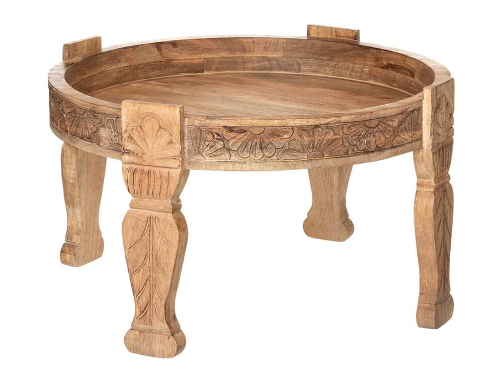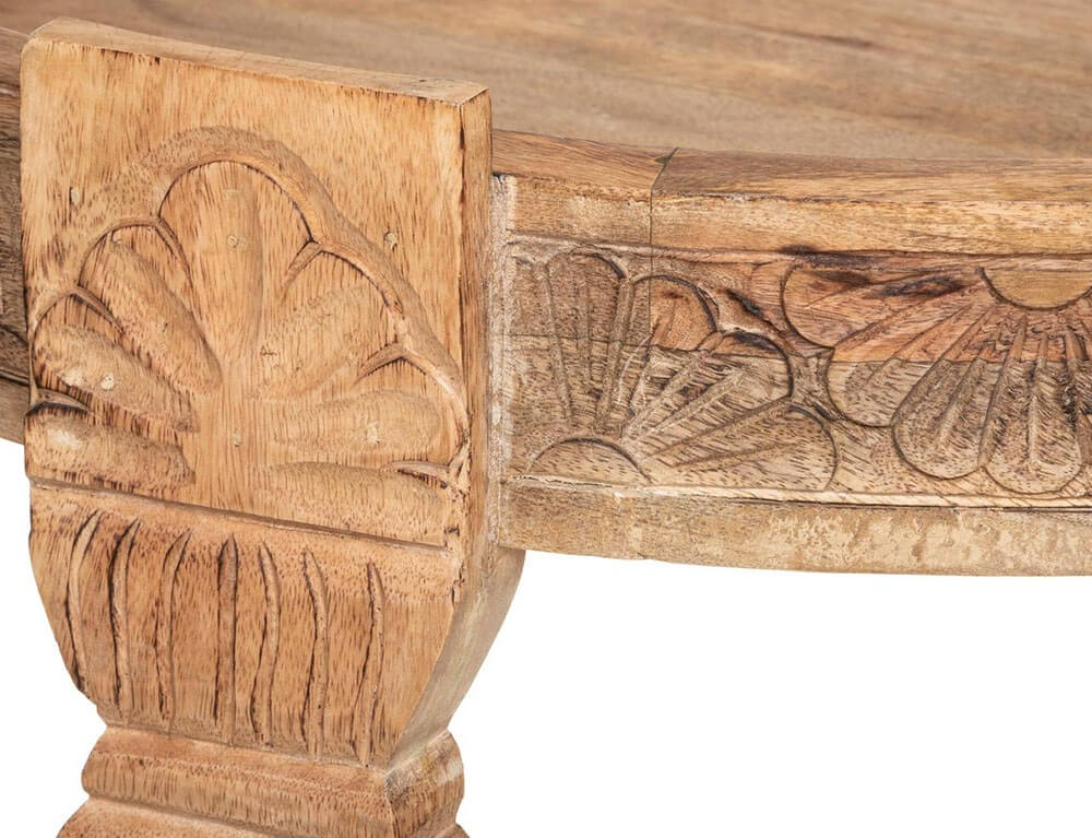 Το βοηθητικό τραπεζάκι Gypsy είναι η ιδανική προσθήκη στο σπίτι σας. Τα ιδιαίτερα σκαλιστά του σχέδια θα δώσουν στο χώρο σας μια ρομαντική και boho αισθητική και θα τραβήξει σίγουρα τα βλέμματα. Είναι κατασκευασμένο από ξύλο μάνγκο, ένα σκληρό ξύλο λόγω της αντοχής, της πυκνότητας, της ελκυστικής εμφάνισης και φυσικά της αντοχής του που του επιτρέπει να μην φθείρεται γρήγορα και να διατηρεί την υψηλή του στιλπνότητα για πολλά χρόνια. Δεν συνίσταται η χρήση λειαντικών προϊόντων (χλωρίνη, διαλύτες κτλ) και αιχμηρών αντικειμένων που μπορεί να χαράξουν την επιφάνεια. Για τον καθαρισμό του μπορείτε να χρησιμοποιήσετε ένα ήπιο διάλυμα σαπουνιού και να το στεγνώσετε αμέσως.