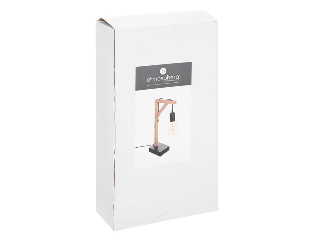 Με το επιτραπέζιο φωτιστικό από την Atmosphera θα δημιουργήσετε μια μοναδική ατμόσφαιρα και θα δώσετε μια μοντέρνα νότα σε οποιοδήποτε χώρο του σπιτιού σας. Είναι κατασκευασμένο από ξύλο πεύκου και η βάση του από πολυαιθυλένιο (ΡΕΤ).