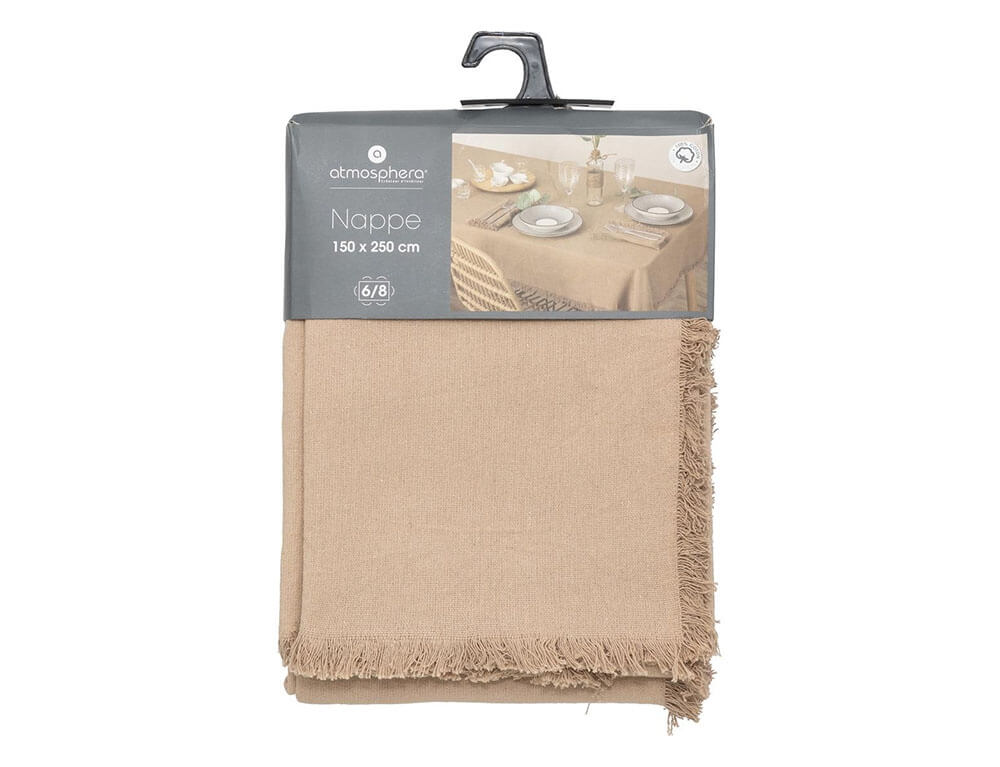 Τραπεζομάντηλο Maha Atmosphera με κρόσσια και διαστάσεις 250x150cm - Beige