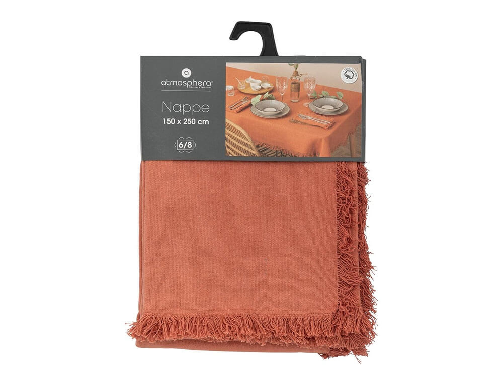 Τραπεζομάντηλο Maha Atmosphera με κρόσσια και διαστάσεις 250x150cm - Pink terracotta