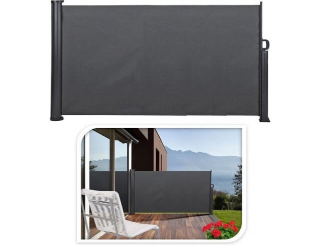 Το πτυσσόμενο αντιανεμικό πανί βεράντας είναι η ιδανική λύση για όσους αναζητούν ιδιωτικότητα και προστασία από τον άνεμο στον εξωτερικό χώρο τους. Κατασκευασμένο από αλουμίνιο, ο σκελετός του είναι ανθεκτικός και αντέχει στις καιρικές συνθήκες. Το πολυεστερικό ύφασμα με υδατοαπωθητική επίστρωση προσφέρει προστασία από τη βροχή και τον ήλιο.