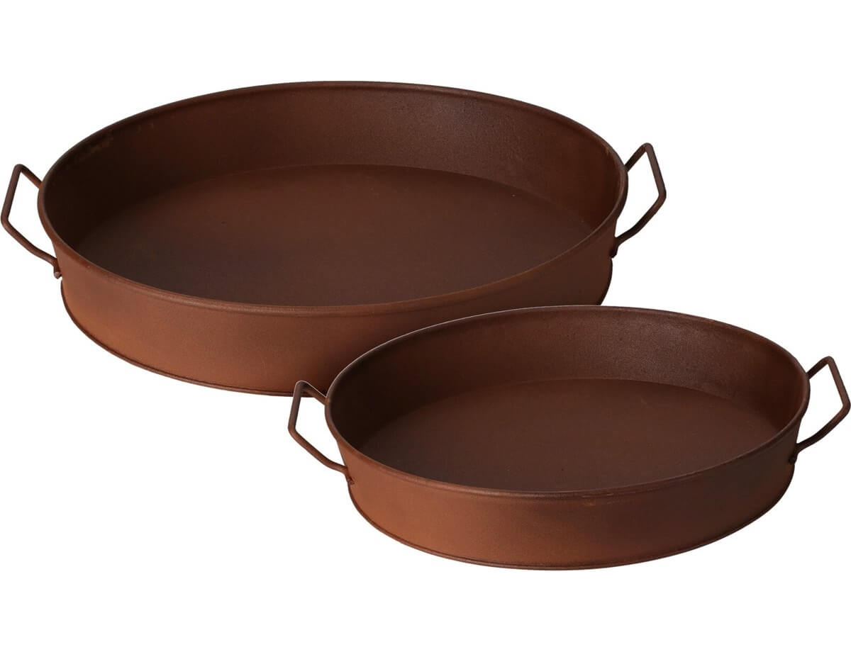 Σετ 2 Mεταλλικoί δίσκοι σερβιρίσματος (FZ1001030) με λαβές, σε ξεχωριστό φινίρισμα σκουριάς, Φ25 x 45 cm και Φ30 x 52 cm