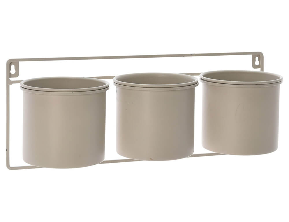 Δημιουργήστε μια όμορφη σύνθεση και δώστε χρώμα και ζωή στο μπαλκόνι ή τη βεράντα σας με το επιτοίχιο σετ κασπώ. Μπορεί να χρησιμοποιηθεί ως κασπώ για γλάστρες, αλλά και σαν αποθηκευτικός χώρος για μικροαντικείμενα. Διαθέτει επιτοίχια βάση για να εξοικονομήσετε περισσότερο χώρο και περιλαμβάνονται 3 κασπώ. Είναι κατασκευασμένο από μέταλλο, ένα ανθεκτικό υλικό στα χτυπήματα και τις καιρικές συνθήκες.