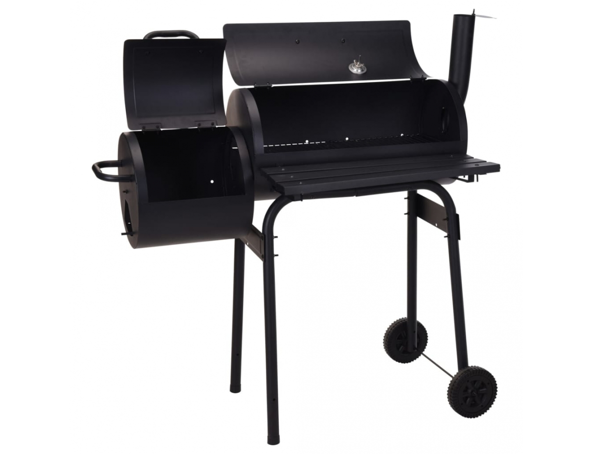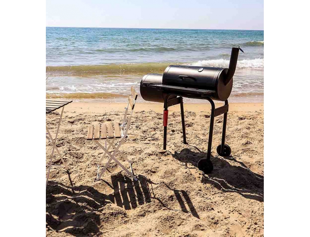 Η ψησταριά και καπνιστής BBQ κάρβουνου είναι ιδανική για ψήσιμο στον κήπο σας. Διαθέτει καπάκι, καμινάδα, λαβές και πόδια στήριξης με 2 τροχούς για εύκολη μετακίνηση. Με πάγκο και διαστάσεις 30 x 61 x 95 εκατοστά, αυτή η ψησταριά θα σας βοηθήσει να ετοιμάσετε νόστιμα γεύματα στον ανοιχτό αέρα με άνεση και ευκολία. Το μαγείρεμα σε αυτόν τον καπνιστή μπάρμπεκιου με ξύλα ή κάρβουνα είναι ιδανικό για τον λάτρη του κρέατος που του αρέσει η ποικιλία.