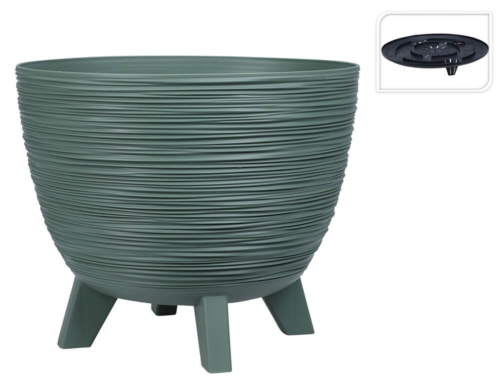 Δώστε ζωή και χρώμα στο μπαλκόνι ή τη βεράντα σας με τη γλάστρα σε πράσινη απόχρωση. Διαθέτει σύστημα αποστράγγισης και μπορεί να χρησιμοποιηθεί και ως κασπώ. Eίναι κατασκευασμένη από πολυαιθυλένιο, ένα ανθεκτικό υλικό και με υψηλή αντοχή στην ηλιακή ακτινοβολία, καθώς και στις καιρικές συνθήκες. Είναι κατάλληλη και για εσωτερικό και για εξωτερικό χώρο και διαθέτει 4 πόδια για περισσότερη σταθερότητα.