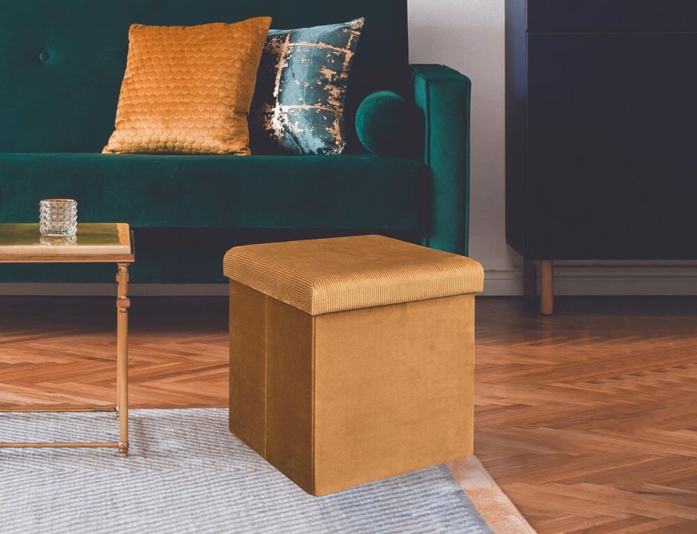 Αναβαθμίστε το χώρο σας με το σκαμπό Giulia από τη Home Deco Factory, που συνδυάζει λειτουργικότητα και αισθητική. Διαθέτει αποθηκευτικό χώρο, όπου μπορείτε να τοποθετήσετε διάφορα αντικείμενα. Παράλληλα, μπορεί να σας χρησιμεύσει και ως επιπλέον κάθισμα. Η βελούδινη υφή και η κίτρινη απόχρωση του θα δώσουν μια μοντέρνα πινελιά στη διακόσμησή σας. Είναι αναδιπλούμενο, ώστε να το αποθηκεύετε χωρίς να πιάνει πολύ χώρο εάν δεν το χρειάζεστε.