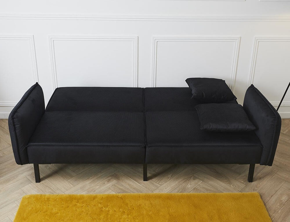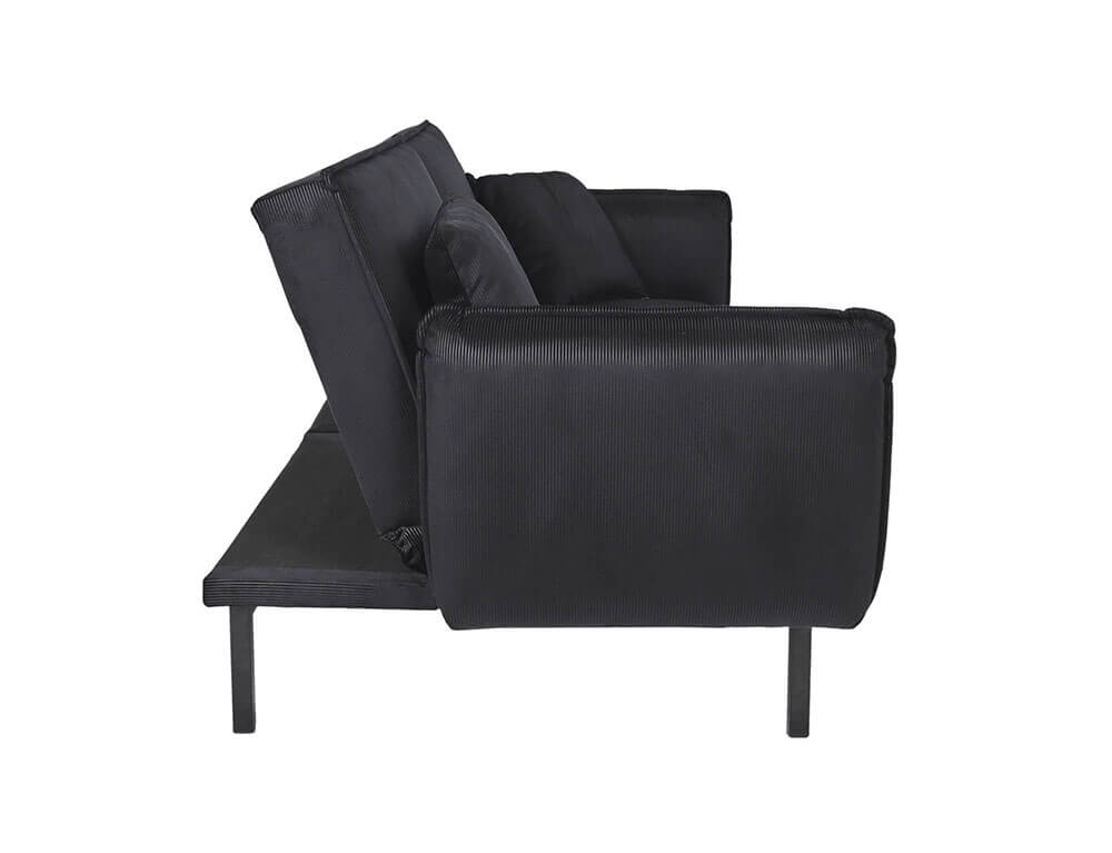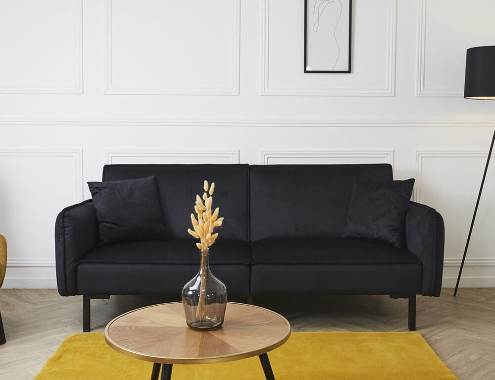 Απολαύστε στιγμές χαλάρωσης και αναβαθμίστε το χώρο σας με το τριθέσιο καναπέ Giulia από τη Ηome Deco Factory. Ο μοντέρνος σχεδιασμός του και το βελούδινο ύφασμα σε μαύρη απόχρωση θα δώσουν στο χώρο σας μια ρετρό και κομψή αισθητική. Ο καναπές μετατρέπεται σε λίγα δευτερόλεπτα σε ένα πρακτικό και άνετο κρεβάτι. Τα μπράτσα του καναπέ αφαιρούνται, εάν θελήσετε, για περισσότερη άνεση χωρίς περιορισμούς. Ο μεταλλικός σκελετός παρέχει στήριξη και σταθερότητα, ενώ τα μαξιλάρια διαθέτουν πλούσια επένδυση για περισσότερη άνεση.