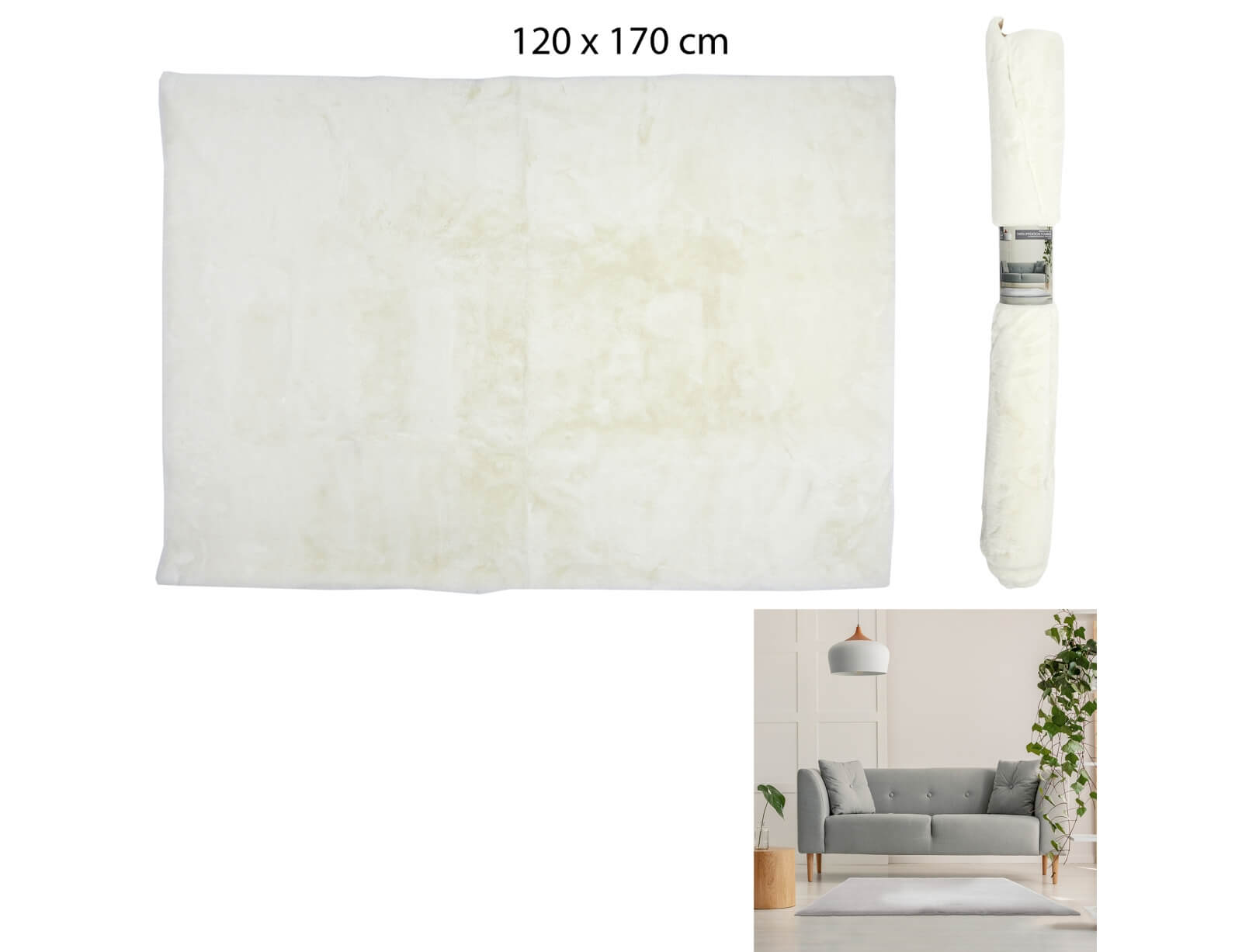 Χαλί Ορθογώνιο απομίμηση γούνας από πολυεστέρα με διαστάσεις 120 x 170 cm - Σε λευκή απόχρωση