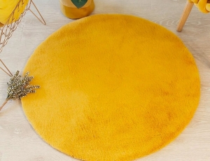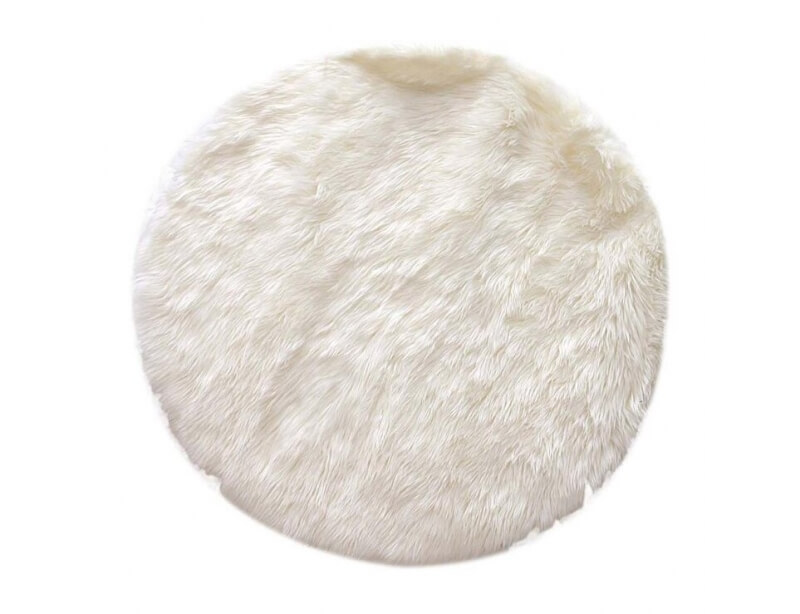 Χαλί στρογγυλό απομίμηση γούνας από πολυεστέρα με διαστάσεις 115 x 115 x 1 cm - Σε λευκή απόχρωση