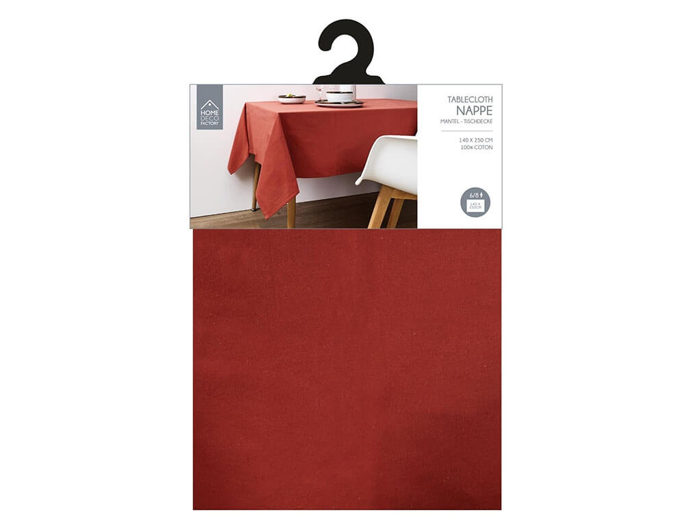 Ανανεώστε και αναδείξτε την τραπεζαρία σας με το τραπεζομάντηλο από την Home Deco Factory. Η κόκκινη απόχρωση του θα δώσει μια μοντέρνα και κομψή αίσθηση στο χώρο σας. Είναι κατασκευασμένο από 100% βαμβάκι και καθαρίζεται εύκολα. Για καλύτερη φροντίδα συνίσταται πλύση και σιδέρωμα σε χαμηλές θερμοκρασίες και να μην χρησιμοποιείται κάποιο λευκαντικό.