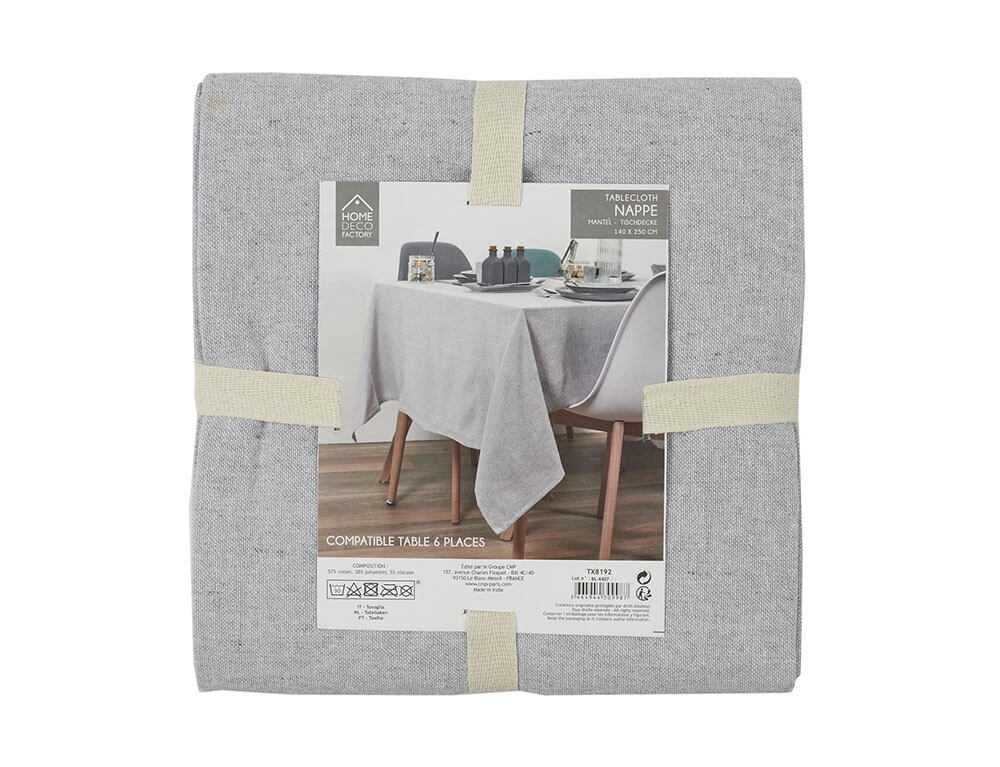 Ανανεώστε και αναδείξτε την τραπεζαρία σας με το τραπεζομάντηλο από την Home Deco Factory. Η γκρι απόχρωση του θα δώσει μια μοντέρνα και κομψή αίσθηση στο χώρο σας. Είναι κατασκευασμένο από πολυεστέρα και βαμβάκι και καθαρίζεται εύκολα. Για καλύτερη φροντίδα συνίσταται πλύση και να μην χρησιμοποιείται κάποιο λευκαντικό.