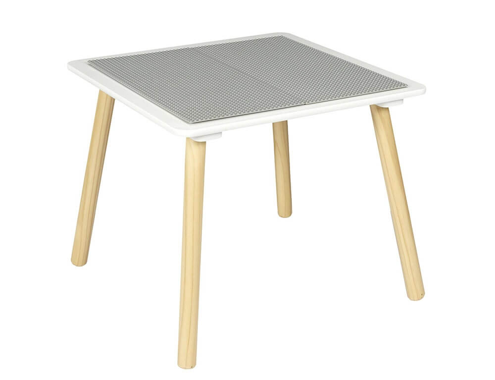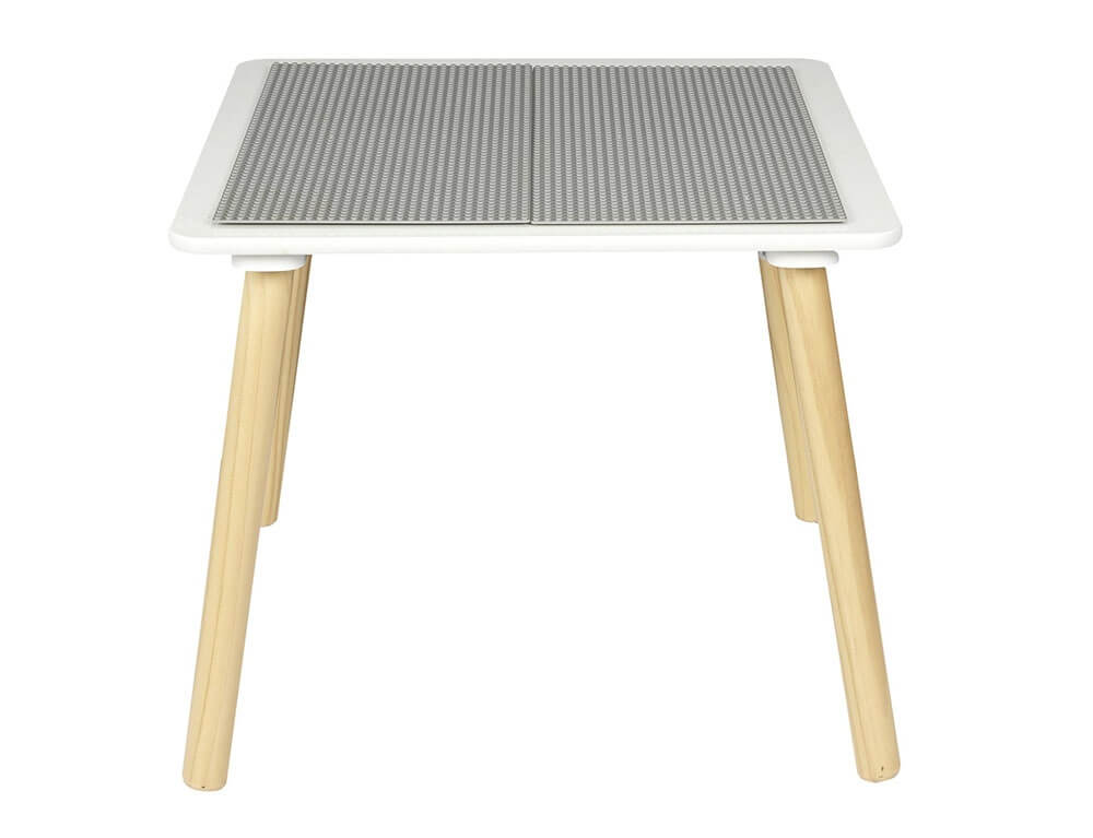 Tο τραπεζάκι δραστηριοτήτων είναι η ιδανική προσθήκη στο παιδικό δωμάτιο. Διαθέτει βάση για τουβλάκια ώστε το παιδί να μπορεί να φτιάχνει κατασκευές με αυτά σε μία σταθερή επιφάνεια. Τα πόδια είναι από ξύλο πεύκου για περισσότερη ανθεκτικότητα και σταθερότητα.