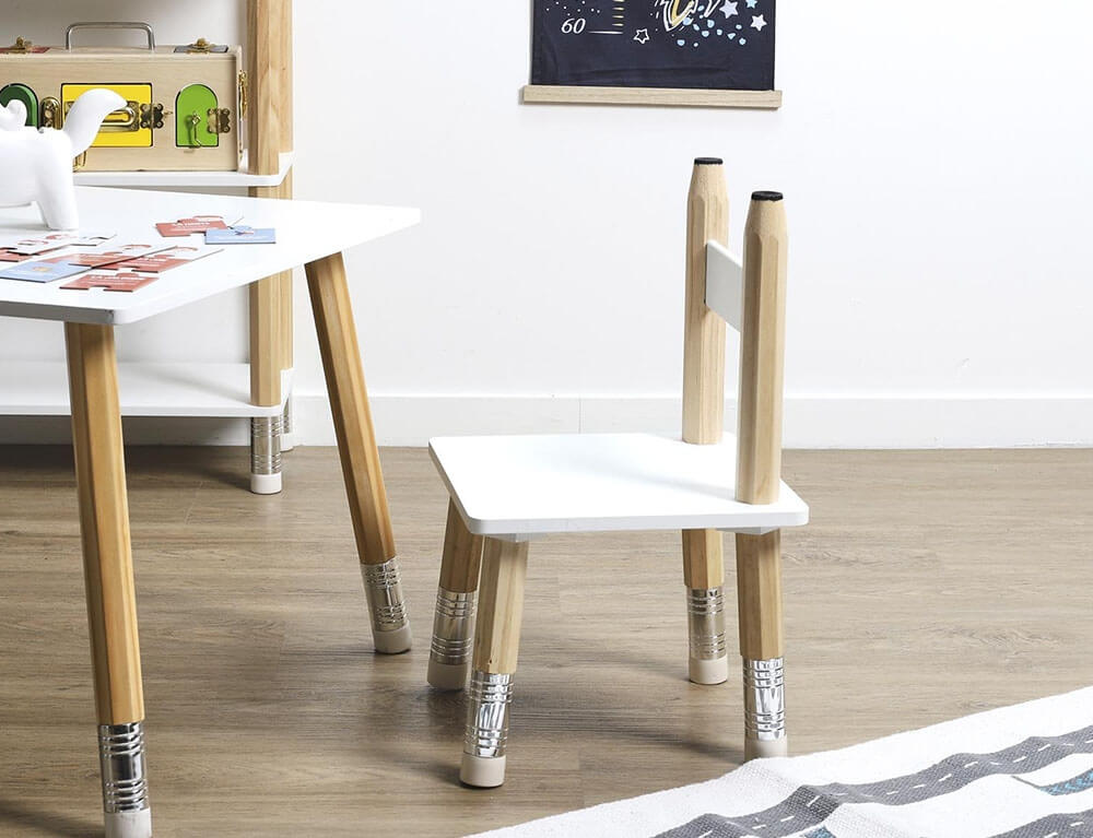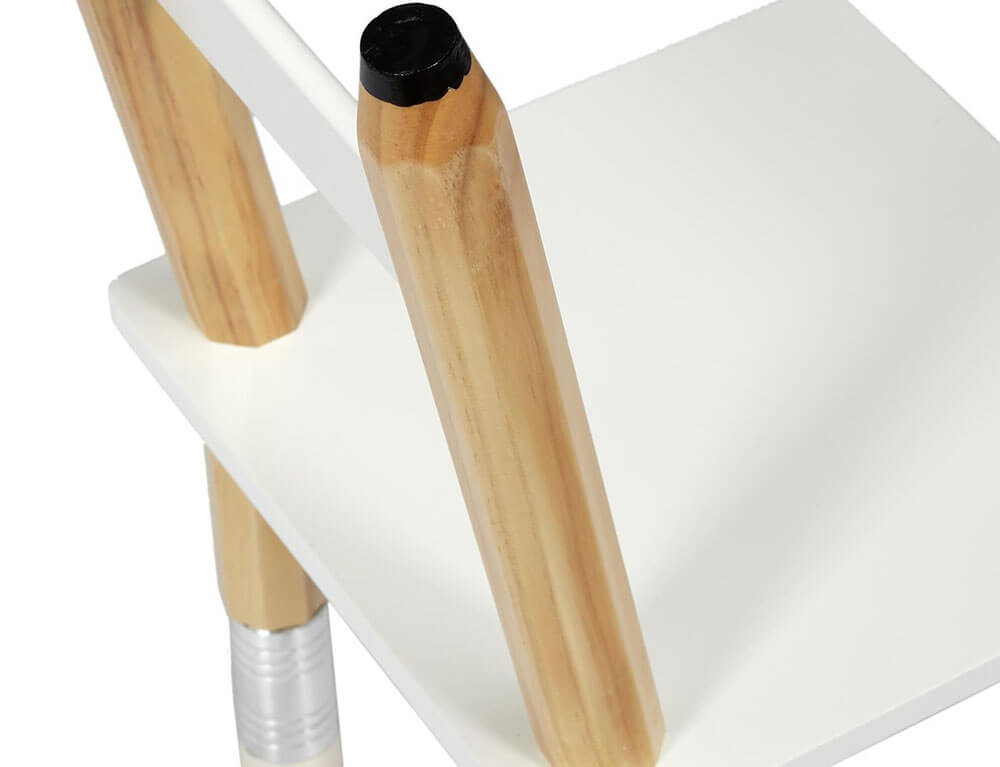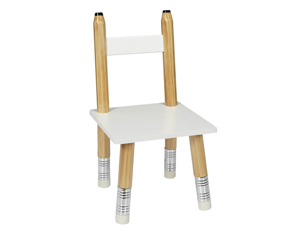Το σετ τραπεζάκι και καρέκλες Crayon από τη Home Deco Kids είναι η ιδανική προσθήκη στο παιδικό δωμάτιο. Αποτελείται από 2 καρέκλες και τα πόδια τους έχουν σχήμα μολυβιού και θα δώσουν μια παιχνιδιάρικη διάθεση στο χώρο. Είναι κατασκευασμένο από ξύλο πεύκου και MDF σε λευκό χρώμα με πόδια σε φυσική απόχρωση. Διαθέτουν στρογγυλεμένες άκρες για να προστατεύουν τα παιδιά από τραυματισμούς.