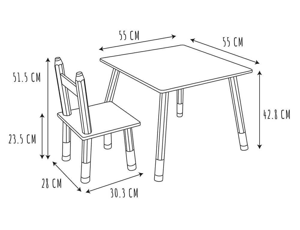 Σετ Τραπέζι και Καρέκλες Σχέδιο Μολύβι Home Deco Kids - 3 τεμάχια
