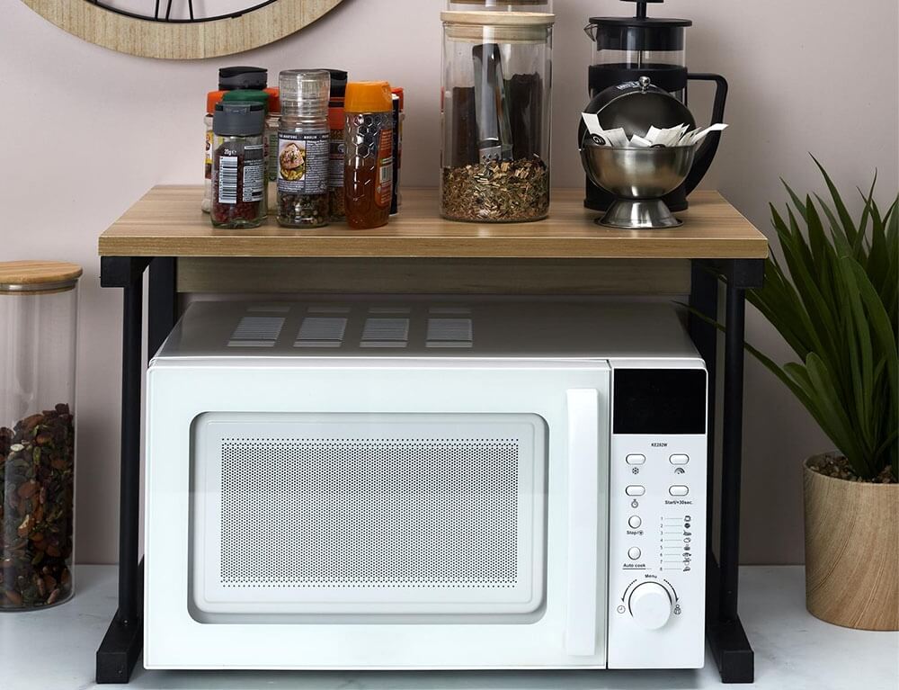 Οργανώστε και διατηρήστε τακτοποιημένη την κουζίνα σας με το ράφι από την Home Deco Factory. Το ράφι μπορεί να τοποθετηθεί πάνω από το φούρνο μικροκυμάτων για περισσότερη εξοικονόμηση χώρου. Είναι κατασκευασμένο από μέταλλο και MDF.