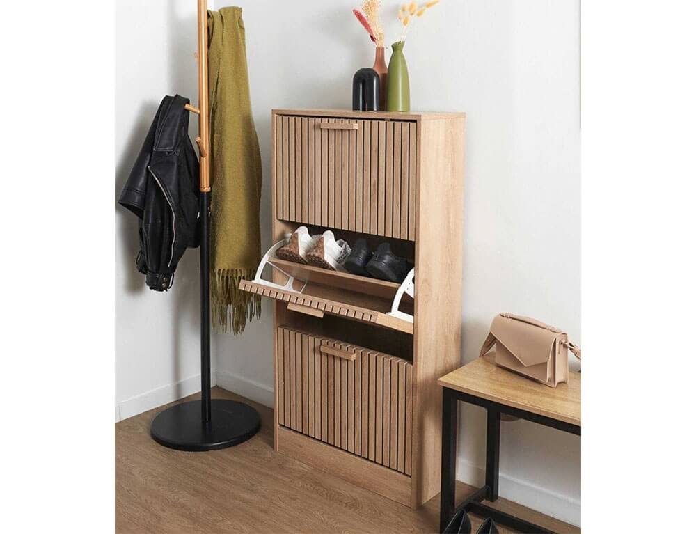 Οργανώστε τα παπούτσια σας και κρατήστε το χώρο σας τακτοποιημένο με μια παπουτσοθήκη. Διαθέτει 3 ράφια και κάθε ράφι αποτελείται από 2 επίπεδα, στα οποία μπορείτε να τοποθετήσετε από αθλητικά μέχρι ψηλοτάκουνα παπούτσια. Χωράει έως και 18 ζευγάρια παπούτσια και θα δώσει μια νότα φυσικότητας και μινιμαλισμού στο χώρου σας.
