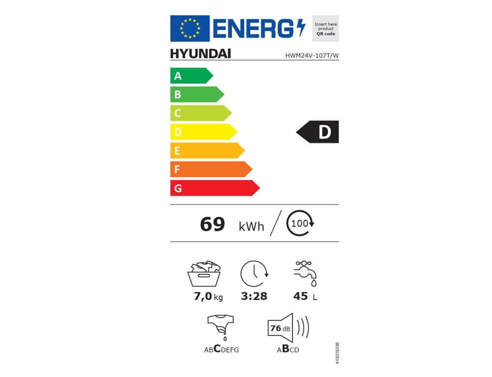 Πλυντήριο ρούχων Hyundai HWM24V-107T/W με χωρητικότητα 7kg, 1000rpm και ενεργειακή κλάση D