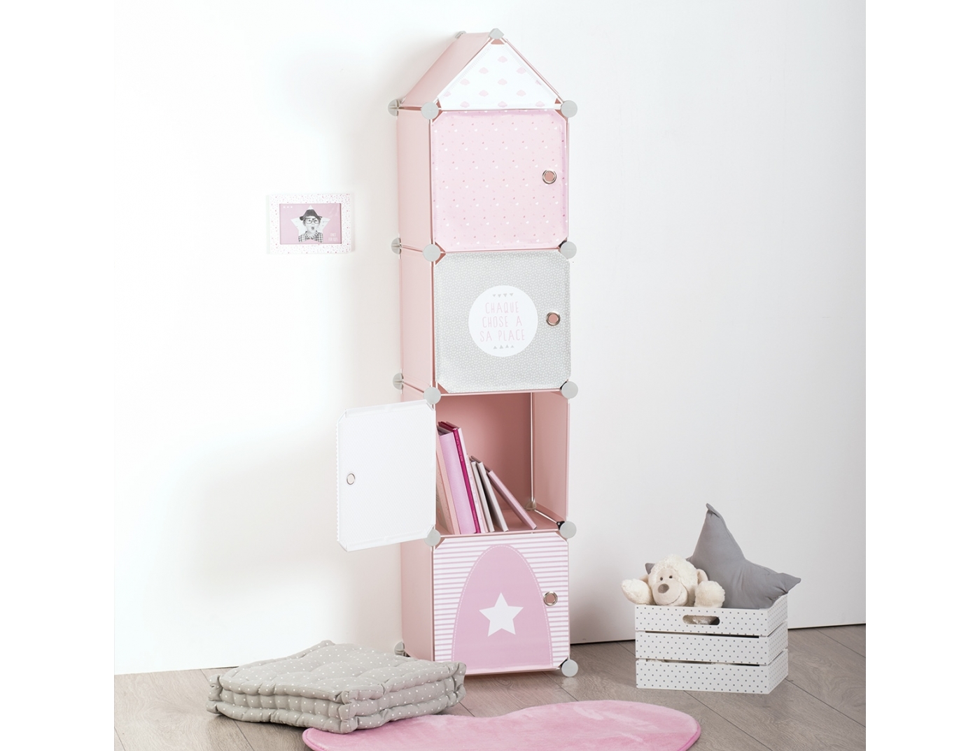 Περιλαμβάνει 4 ράφια με πορτάκι, ιδανικά για την αποθήκευση παιχνιδιών, ρούχων ή βιβλίων. Σε χαρούμενες ροζ και λευκές αποχρώσεις που προσφέρουν μια ευχάριστη ατμόσφαιρα στο παιδικό δωμάτιο, βοηθά τα παιδιά να αναπτύξουν καλές συνήθειες οργάνωσης από μικρή ηλικία.