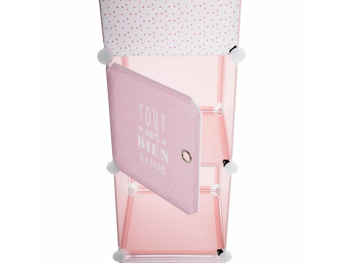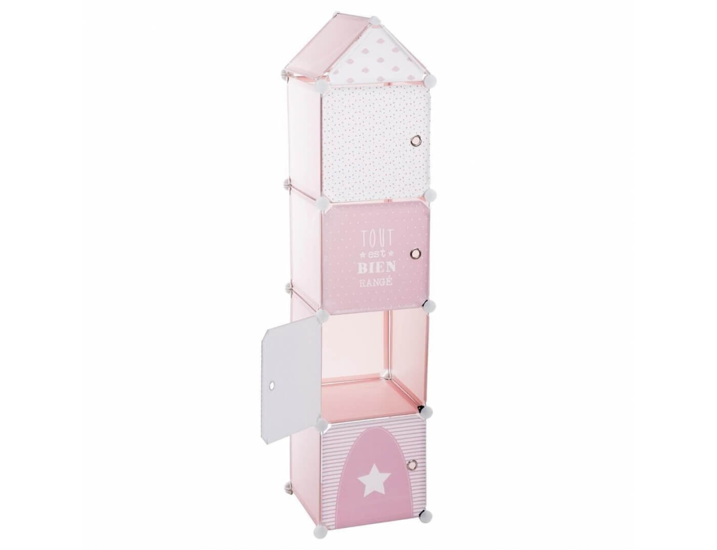 Περιλαμβάνει 4 ράφια με πορτάκι, ιδανικά για την αποθήκευση παιχνιδιών, ρούχων ή βιβλίων. Σε χαρούμενες ροζ και λευκές αποχρώσεις που προσφέρουν μια ευχάριστη ατμόσφαιρα στο παιδικό δωμάτιο, βοηθά τα παιδιά να αναπτύξουν καλές συνήθειες οργάνωσης από μικρή ηλικία.