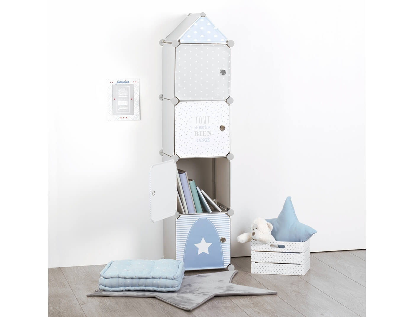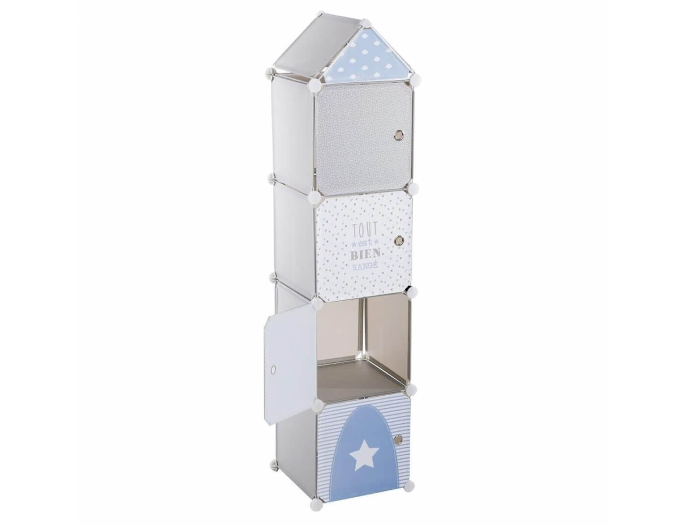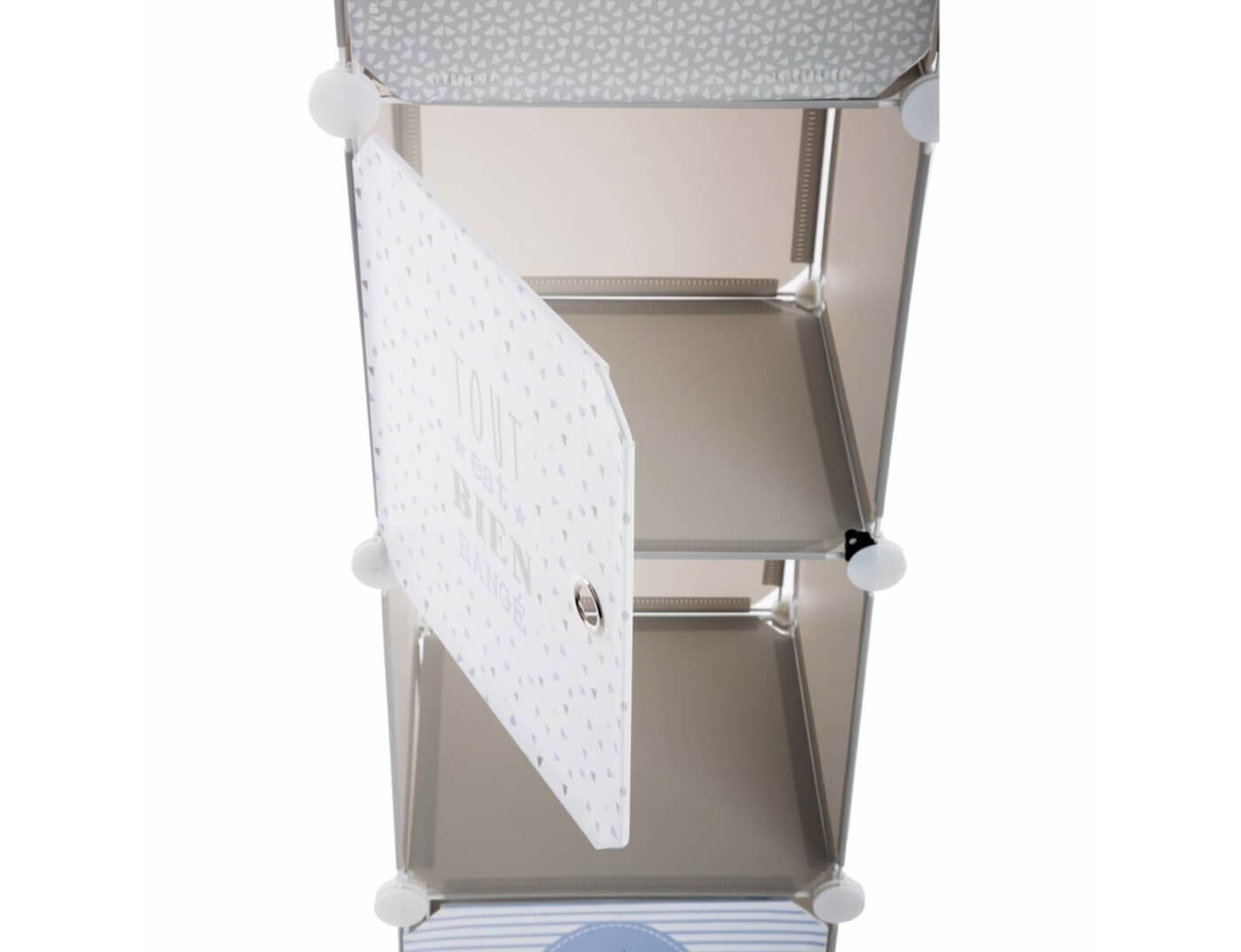 Περιλαμβάνει 4 ράφια με πορτάκι, ιδανικά για την αποθήκευση παιχνιδιών, ρούχων ή βιβλίων. Σε χαρούμενες γκρι και λευκές αποχρώσεις που προσφέρουν μια ευχάριστη ατμόσφαιρα στο παιδικό δωμάτιο, βοηθά τα παιδιά να αναπτύξουν καλές συνήθειες οργάνωσης από μικρή ηλικία.