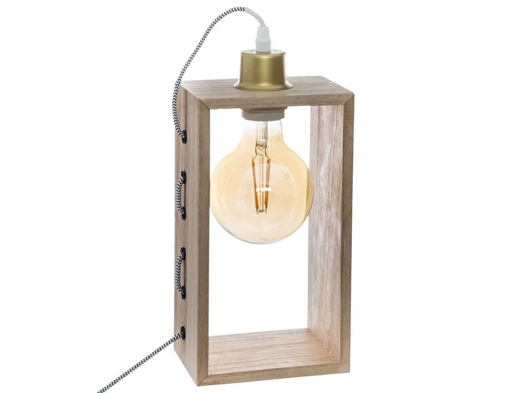 Με το επιτραπέζιο φωτιστικό από την Atmosphera θα δημιουργήσετε μια μοναδική ατμόσφαιρα και θα δώσετε μια industrial νότα σε οποιοδήποτε χώρο του σπιτιού σας. Διαθέτει υποδοχή για έναν λαμπτήρα Ε27 και η βάση του είναι κατασκευασμένη από ξύλο paulownia.