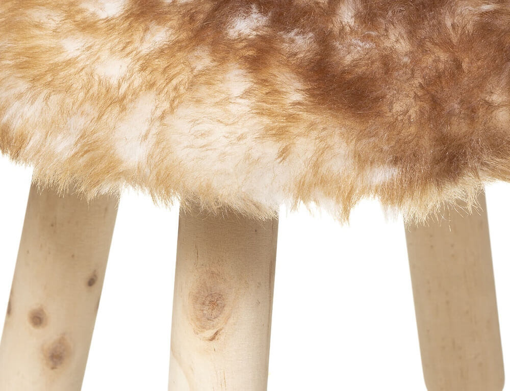 Παιδικό σκαμπό από πολυεστερικό ύφασμα καφέ χρώματος με ταπετσαρία απομίμηση γούνας, με αντοχή στη τριβή και στη φθορά. Έχει διακοσμητικό αλλά και χρηστικό χαρακτήρα καθώς μπορείτε να το χρησιμοποιήσετε σαν καθισματάκι για το παιδί σας. Στηρίζεται σε 4 στιβαρά πόδια από ξύλο πεύκου σε καφέ χρώμα που δένουν αρμονικά με το σύνολο και έχει επένδυση αφρού πολυουρεθάνης (PU).