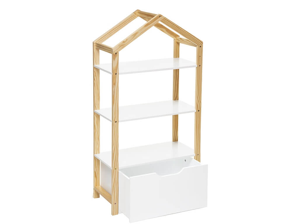 Βιβλιοθήκη Σχέδιο Σπιτάκι Atmosphera με 3 ράφια, συρτάρι και διαστάσεις 60x30x120.5cm - Aπόχρωση Ξύλου/Λευκό