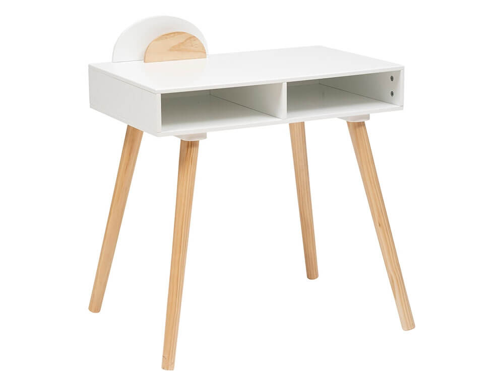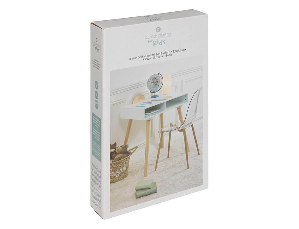 Το παιδικό γραφείο από την Atmosphera θα γίνει ο καλύτερος σύντροφος στο διάβασμα για το παιδί σας. Διαθέτει 2 ράφια για να μπορεί το παιδί να αποθηκεύσει τους μαρκαδόρους, τα βιβλία ή ό,τι άλλο θέλει και να μένει το δωμάτιο τακτοποιημένο και καθαρό. Είναι κατασκευασμένο από MDF και στηρίζεται σε 4 στιβαρά πόδια από ξύλο πεύκου για περισσότερη ανθεκτικότητα και σταθερότητα, που δένουν αρμονικά με το σύνολο.
