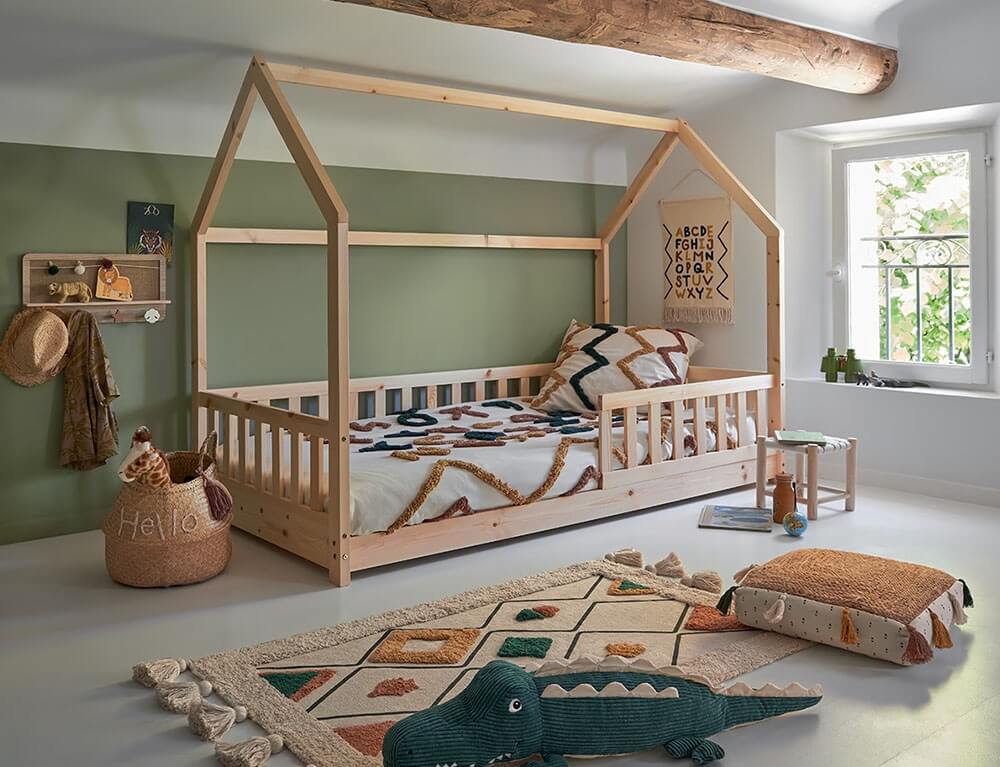 Το παιδικό κρεβάτι Bosco είναι η ιδανική επιλογή για εσάς! Εμπνευσμένο από τη φιλοσοφία Montessori, αυτό το κρεβάτι παρέχει ασφάλεια και αυτονομία στα παιδιά, ενθαρρύνοντάς τα να ανακαλύπτουν τον κόσμο τους με δημιουργικότητα και φαντασία. Είναι κατασκευασμένο από επιλεγμένο ξύλο πεύκου που προσφέρει αντοχή και αισθητική και διαθέτει προστατευτικό κάγκελο για περισσότερη ασφάλεια. Mπορείτε να το διακοσμήσετε με φωτάκια, μαξιλάρια, αρκουδάκια και ότι άλλο αρέσει στο παιδί σας και δώστε μια αίσθηση μαγείας και περιπέτειας στο παιδικό δωμάτιο.