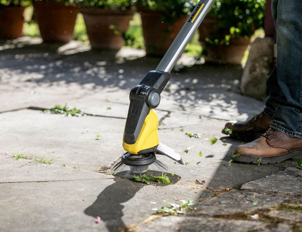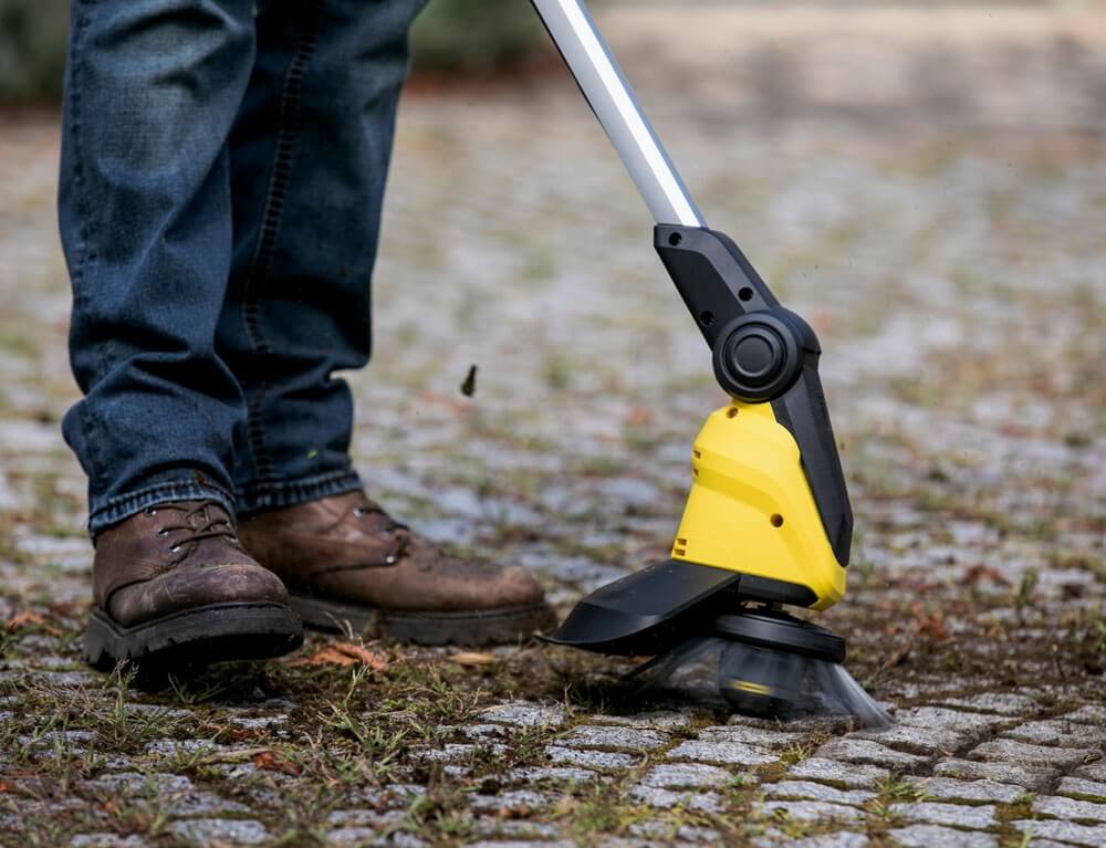 Τα ενοχλητικά βρύα και τα ζιζάνια αφαιρούνται χωρίς καταπόνηση στη μέση και τα γόνατά: Με το εργονομικό εργαλείο ξεχορταριάσματος μπαταρίας WRE 18-55 Battery Set. Η μπαταρία και ο φορτιστής περιλαμβάνονται στο σετ. Χάρη στον καινοτόμο σχεδιασμό της βούρτσας με ένα σύστημα αλλαγής χωρίς εργαλεία, τα βρύα και τα ζιζάνια αφαιρούνται αποτελεσματικά από τις επιφάνειες πλακόστρωτων διαδρόμων και βεραντών γύρω από το σπίτι. Επιπλέον, η ταινία τριχών αλλάζεται εύκολα και χωρίς εργαλεία με το νέο σύστημα κλειδώματος. Ο εργονομικός σχεδιασμός του εργαλείου ξεχορταριάσματος με μπαταρία εγγυάται άνεση κατά την εργασία, χωρίς να χρειάζεται να σέρνεται ο χειριστής στο έδαφος. Η μπαταρία είναι συμβατή με όλες τις συσκευές στην πλατφόρμα μπαταριών 18V της Kärcher.