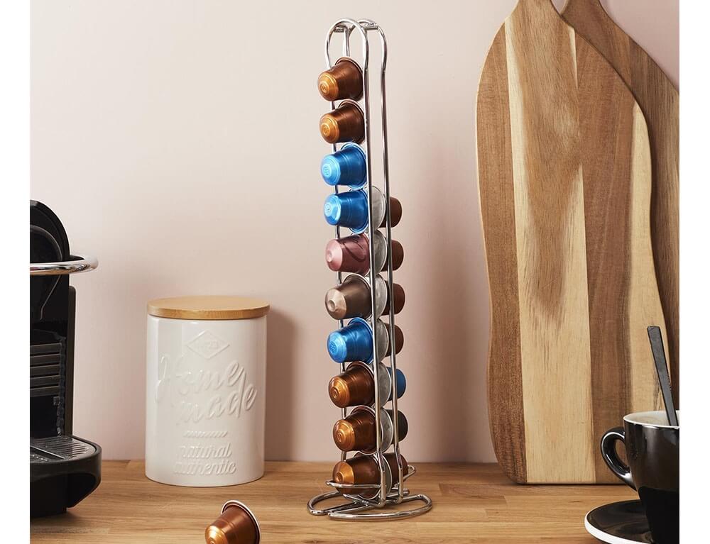 Τακτοποιήστε την κουζίνα σας και οργανώστε τις κάψουλες καφέ με την περιστρεφόμενη βάση από την εταιρεία Cook Concept. Είναι κατασκευασμένη από μέταλλο και προσφέρει χωρητικότητα για έως και 20 κάψουλες Nespresso.