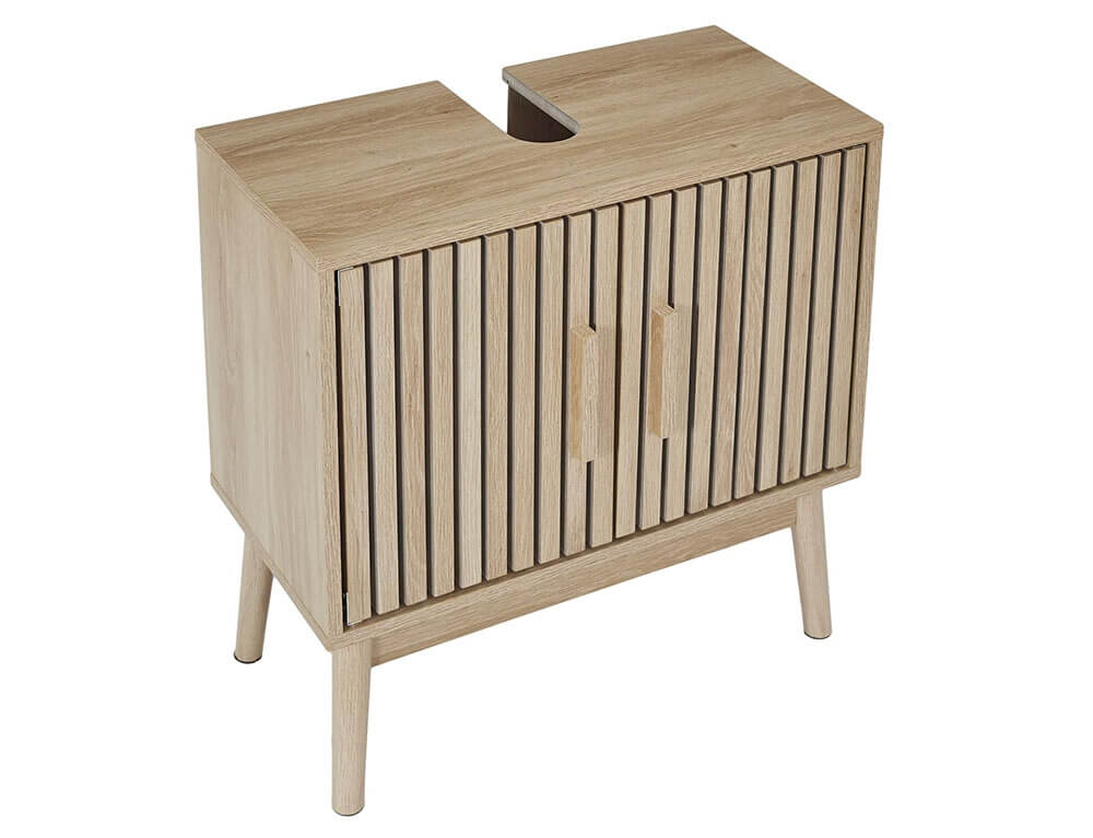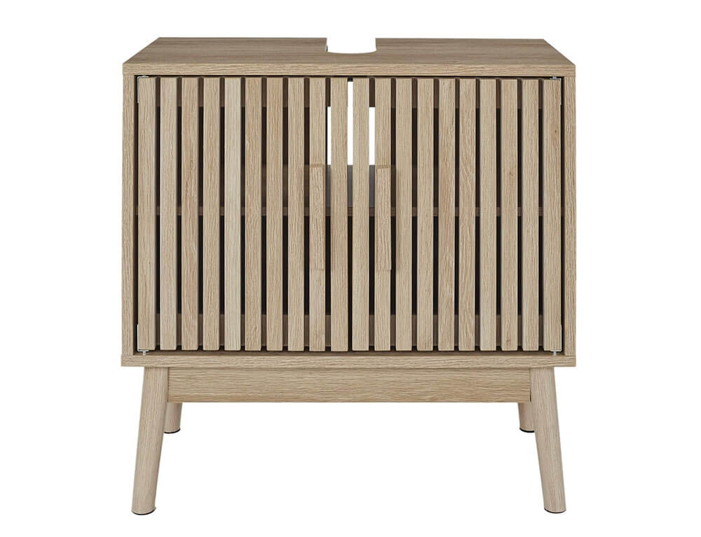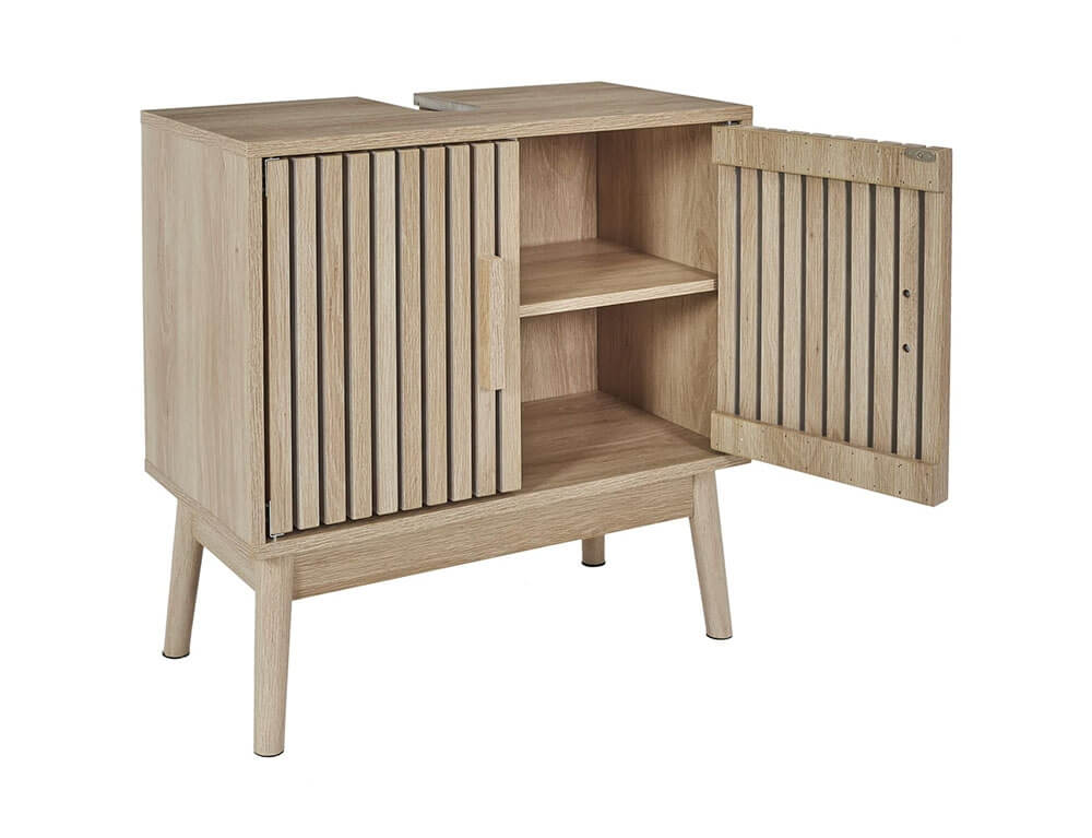 Τακτοποιήστε και οργανώστε το μπάνιο σας με το ντουλάπι μπάνιου Klaus από την Home Deco Factory. Αποτελείται από δύο πόρτες και ένα ράφι και προσφέρει άφθονο αποθηκευτικό χώρο για να διατηρείτε τα διάφορα καθημερινά σας απαραίτητα καλά οργανωμένα. Είναι κατασκευασμένο από MDF με σχέδιο λεπτές, ευθείες γραμμές κατά μήκος της πόρτας, το οποίο προσθέτει επιπλέον ομορφιά.