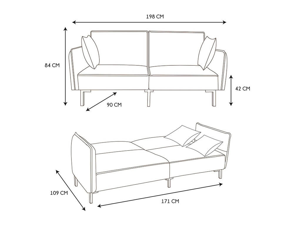 Τριθέσιος Καναπές Κρεβάτι Home Deco Factory με διαστάσεις 198x90x84cm