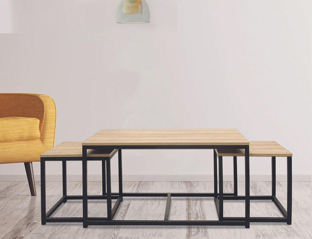 Σετ Τραπεζάκια Σαλονιού Seattle Home Deco Factory με διαστάσεις 90x50x45cm και 40x38x40cm - 3 τεμάχια