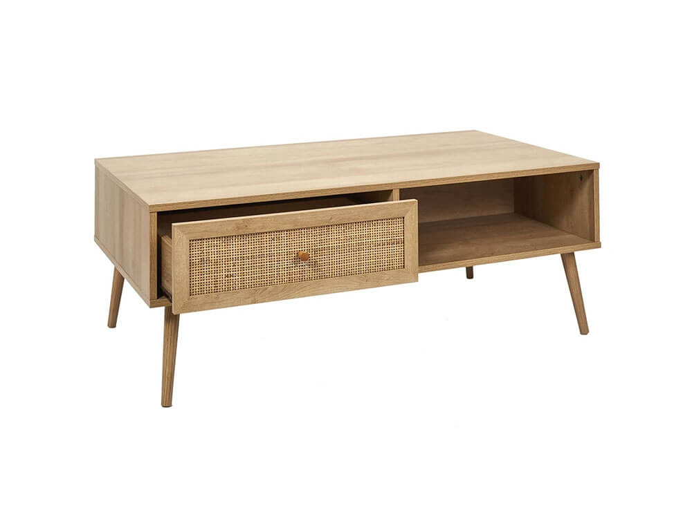 Το τραπεζάκι σαλονιού Bali από τη Home Deco Factory συνδυάζει κομψό σχεδιασμό με πρακτική λειτουργικότητα, προσθέτοντας μια αίσθηση πολυτέλειας και μινιμαλισμού στο χώρο σας. Διαθέτει ένα συρτάρι και ένα ράφι για να διατηρείτε το χώρο σας οργανωμένο και τακτοποιημένο. Είναι κατασκευασμένος από MDF και η βάση του είναι από μέταλλο για μεγαλύτερη σταθερότητα.