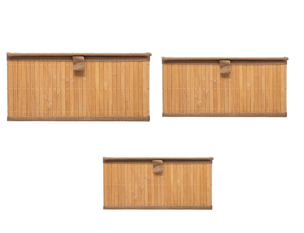 Οργανώστε και τακτοποιήστε το μπάνιο σας με το σετ κουτιών οργάνωσης από τη 5five. Το σετ αποτελείται από 3 κουτιά διαφορετικών μεγεθών, ώστε να έχετε τη δυνατότητα να αποθηκεύσετε και να οργανώσετε ό,τι επιθυμείτε. Είναι κατασκευασμένα από ξύλο bamboo, ένα υλικό ανθεκτικό στην υγρασία, που θα δώσει μια φυσική και minimal αίσθηση στο χώρο σας.