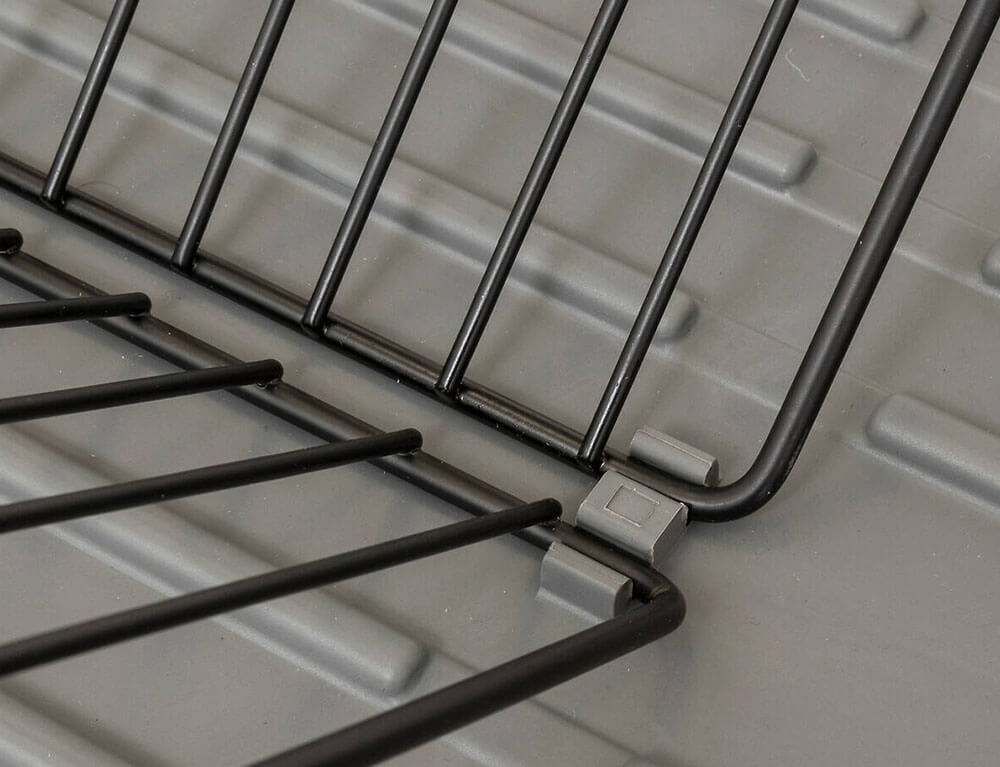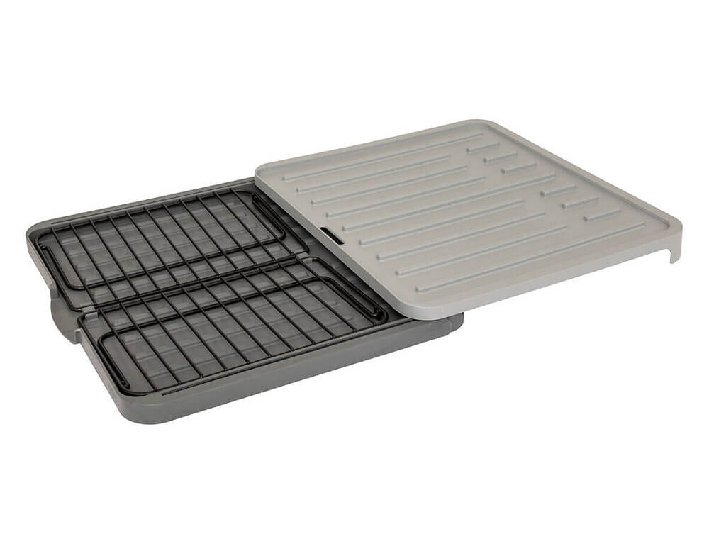 Ανανεώστε και διατηρείστε καθαρή και τακτοποιημένη την κουζίνα σας με την πιατοθήκη από τη 5five. Είναι πτυσσόμενη και μπορείτε να την κλείσετε όταν δεν την χρησιμοποιείτε και έτσι εξοικονομείτε και χώρο στην κουζίνα σας. Διαθέτει δίσκο αποστράγγισης για να μην γεμίζει ο πάγκος σας με νερά και διπλή επίστρωση χρώματος για να μην σκουριάζει και να μην απορροφά τη σκόνη. Επίσης, διαθέτει συρόμενο καπάκι, το οποίο χρησιμεύει και ως επιπλέον δίσκος αποστράγγισης για ποτήρια ή για να τοποθετήσετε βάση για μαχαιροπήρουνα.