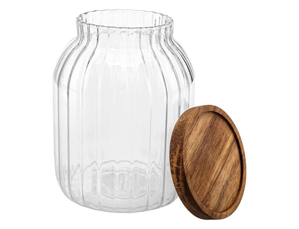 Με το γυάλινο δοχείο τροφίμων μπορείτε να οργανώσετε την κουζίνα σας και να αποθηκεύσετε τρόφιμα ή τα αγαπημένα σας γλυκίσματα. Το καπάκι του είναι κατασκευασμένο από ξύλο και κλείνει αεροστεγώς, με αποτέλεσμα να μην αλλοιώνονται τα τρόφιμα από την υγρασία, τη μούχλα, τη σκόνη και άλλους ρύπους. Επίσης, το φαγητό σας θα παραμείνει πιο φρέσκο με το αρχικό άρωμα για μεγαλύτερο χρονικό διάστημα. To δοχείο είναι κατάλληλο για φούρνο μικροκυμάτων και πλυντήριο πιάτων, αλλά χωρίς το καπάκι.