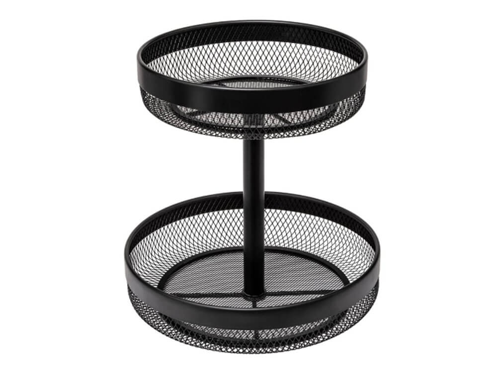 Δημιουργήστε εντυπωσιακές συνθέσεις με φρούτα, γλυκά ή σνακ και ενθουσιάστε τους καλεσμένους σας σε κάθε κάλεσμα. Διαθέτει 2 επίπεδα, για να τοποθετείτε περισσότερα φρούτα και λαχανικά, εξοικονομώντας χώρο και δημιουργώντας μια όμορφη παρουσίαση. Κατασκευασμένη από μέταλλο υψηλής ποιότητας, διασφαλίζει μακροχρόνια χρήση και αντοχή. Το κομψό μαύρο φινίρισμα προσθέτει μια σύγχρονη αίσθηση σε οποιοδήποτε περιβάλλον, κάνοντάς την ιδανική επιλογή για την κουζίνα ή την τραπεζαρία σας.