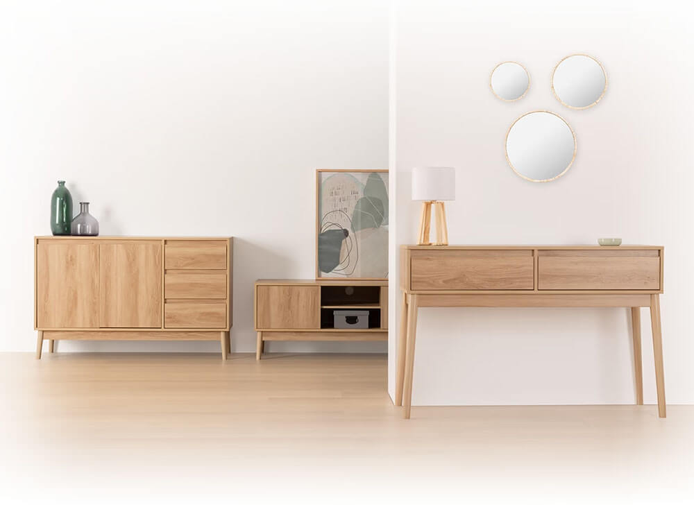 Ανανεώστε το χώρο σας με το έπιπλο τηλεόρασης Abana από τη 5five. Με μοντέρνο και μινιμαλιστικό design και λειτουργικότητα, το έπιπλο τηλεόρασης είναι η ιδανική επιλογή για κάθε σπίτι. Eίναι κατασκευασμένο από MDF, ένα ανθεκτικό υλικό στα χτυπήματα και στο χρόνο και τα πόδια είναι κατασκευασμένα από ξύλο πεύκου. Διαθέτει δύο ράφια και δύο ντουλάπια για να μπορείτε να αποθηκεύετε διάφορα αντικείμενα και να κρατάτε το χώρο σας τακτοποιημένο. Το έπιπλο έχει 2 τρύπες στο πίσω μέρος των ραφιών για τα καλώδια και μεντεσέδες με soft-close που μειώνουν τον ήχο κρότου κατά το κλείσιμο.