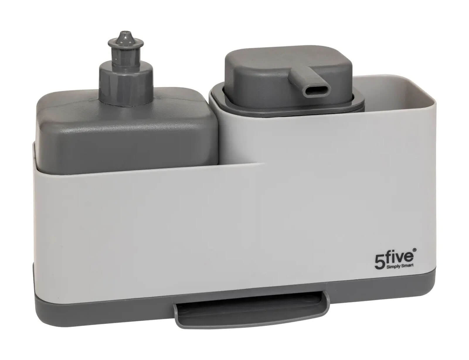 Διατηρήστε τον νεροχύτη σας καθαρό και τακτοποιημένο με τη βάση οργάνωσης από τη 5five. Η βάση οργάνωσης περιλαμβάνει ένα δοχείο για κρεμοσάπουνο και ένα δοχείο για υγρό πιάτων, χωρητικότητας 500ml. Επίσης, η βάση διαθέτει χώρο για να τοποθετείτε το σφουγγάρι και δίσκο αποστράγγισης για να μην γεμίζει ο πάγκος σας με νερά.