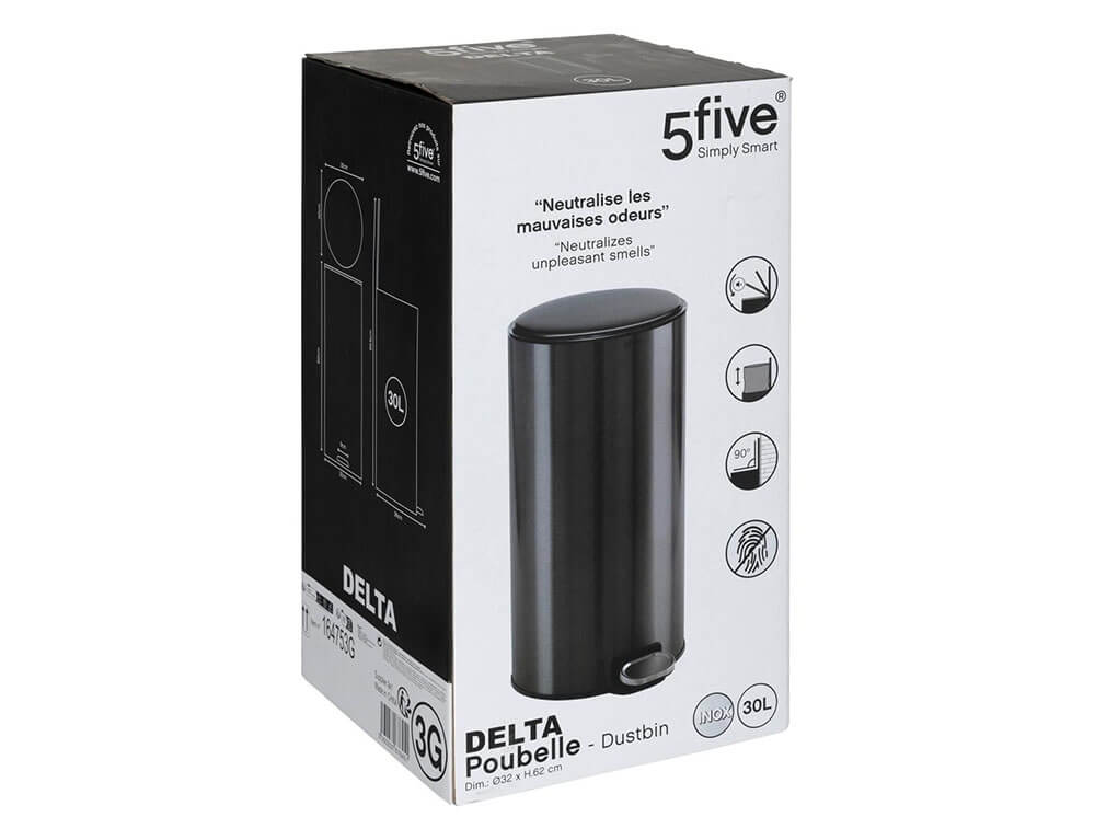 Καλάθι απορριμμάτων Delta 5five με φίλτρο άνθρακα, χωρητικότητα 30L και διαστάσεις 39x33x62cm - Black