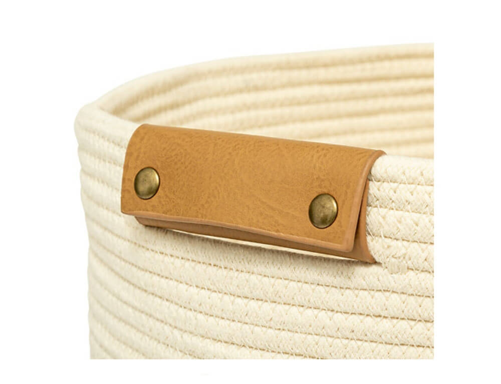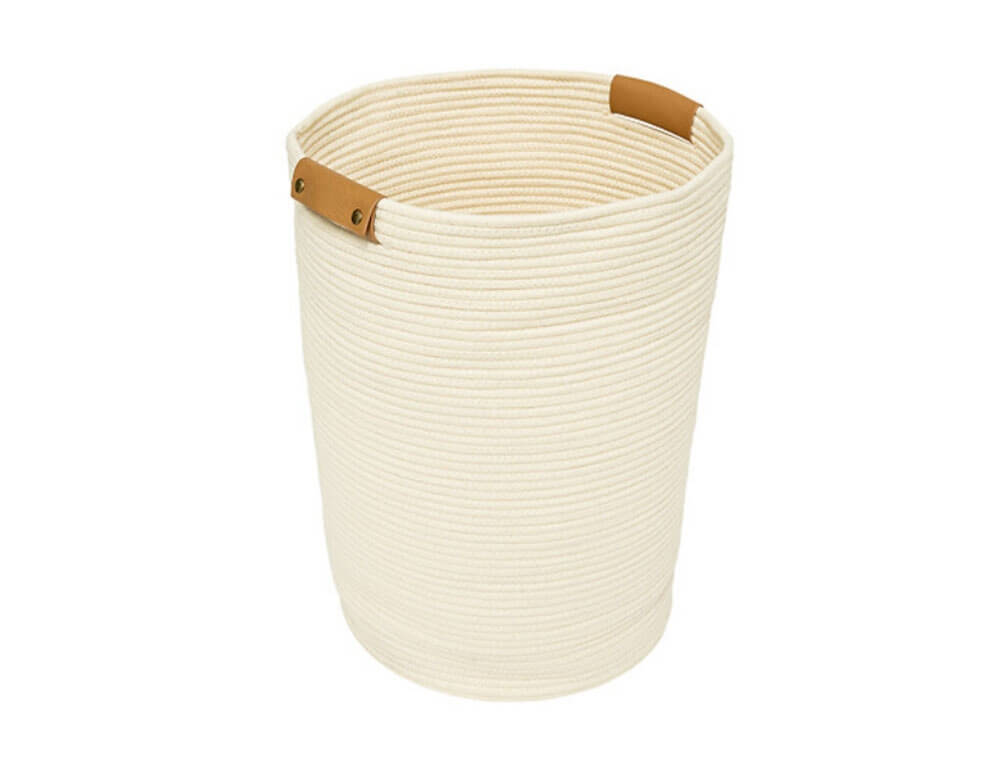 Καλάθι απλύτων κατασκευασμένο από βαμβάκι και πολυεστέρα σε λευκή απόχρωση. Το καλάθι ρούχων είναι απόλυτα κατάλληλο για μικρούς χώρους και κρατά τα βρώμικα ρούχα σας κρυμμένα. Το ανθεκτικό υλικό και η πολυτελής εμφάνιση αυτού του καλαθιού για άπλυτα ρούχα δίνουν στο μπάνιο σας μια εντελώς νέα εμφάνιση.