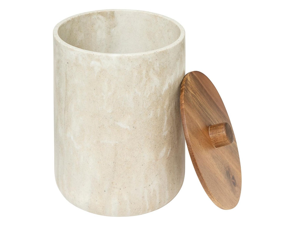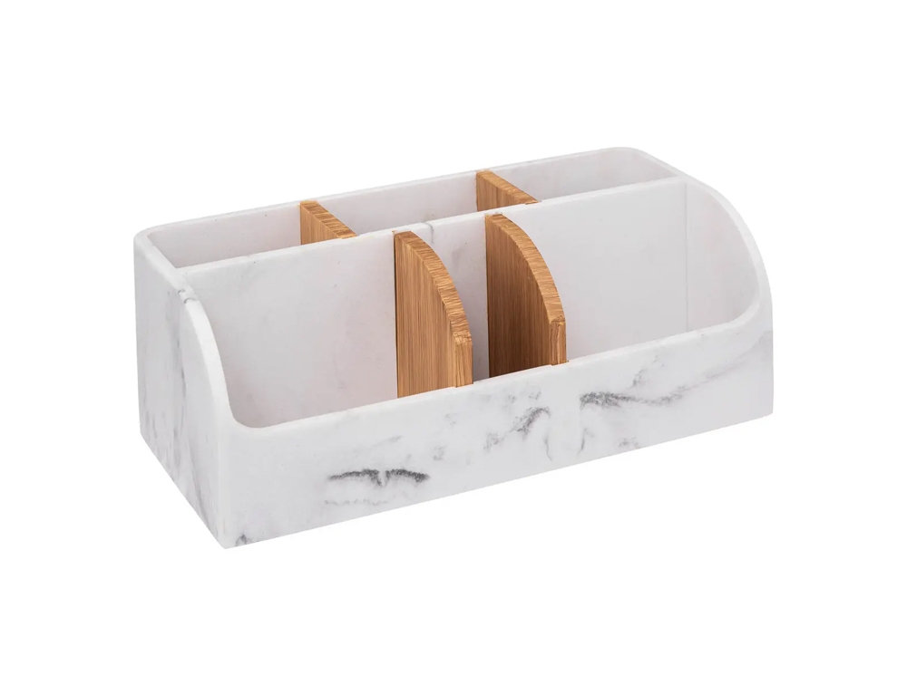 Δοχείο oργάνωσης Μake up της εταιρείας 5Five. Mπορείτε να το χρησιμοποιήσετε για να τοποθετήσετε μέσα τα μικροπράγματά σας όπως λαστιχάκια, κοσμήσματα, δαχτυλίδια, δίσκους ντεμακιγιάζ κλπ. Είναι κατασκευασμένo από ρητίνη, ενώ το καπάκι από μέταλλο, το οποίο είναι εύκολο στη συντήρηση, αλλά παράλληλα και ανθεκτικό στις φθορές και τον χρόνο.