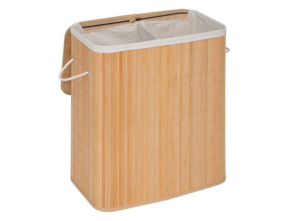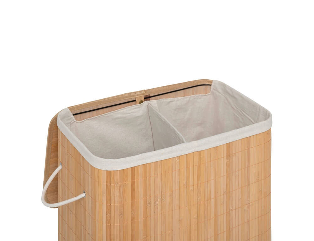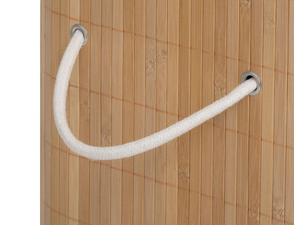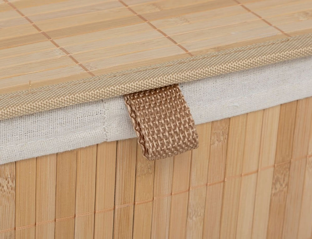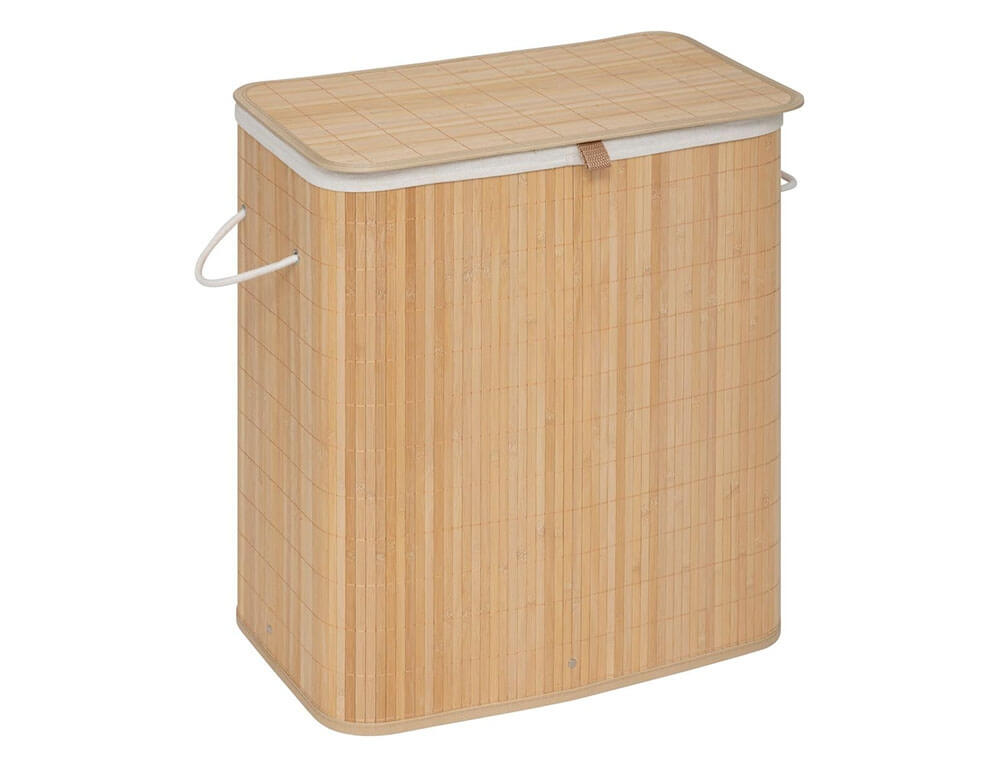 Καλάθι απλύτων με καπάκι κατασκευασμένο από ξύλο μπαμπού σε καφέ απόχρωση. Το καλάθι ρούχων είναι απόλυτα κατάλληλο για μικρούς χώρους και κρατά τα βρώμικα ρούχα σας κρυμμένα. Το ανθεκτικό υλικό και η πολυτελής εμφάνιση αυτού του καλαθιού για άπλυτα ρούχα δίνουν στο μπάνιο σας μια εντελώς νέα εμφάνιση. Εσωτερικά διαθέτει υφασμάτινη θήκη για να μην φεύγουν τα ρούχα σας έξω από το καλάθι. Επίσης, διαθέτει χερούλια για να το μεταφέρετε πιο εύκολα και η θήκη αφαιρείται εύκολα και μπορεί να πλυθεί.