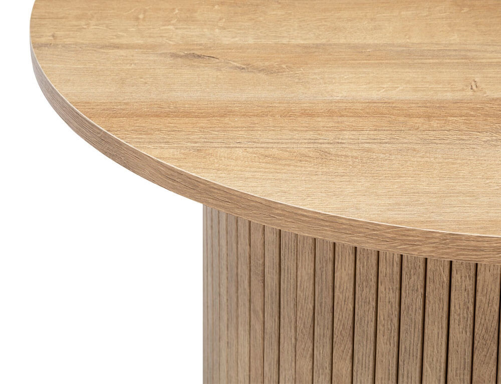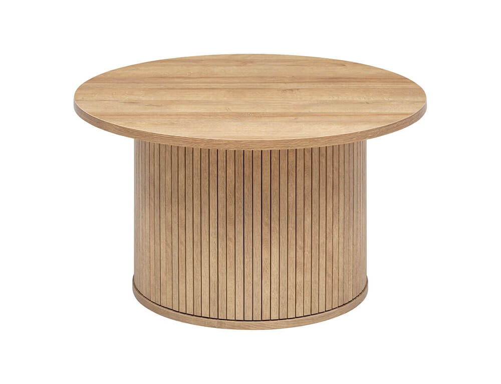 Το βοηθητικό τραπεζάκι σαλονιού είναι ιδανικό για τοποθέτηση στο πλάι του καναπέ αλλά και σε διαφορετικά σημεία του σπιτιού προσφέροντας επιπλέον χώρο για την τοποθέτηση διακοσμητικών ή άλλων μικροαντικειμένων. Κατασκευασμένο από ποιοτικά υλικά, συνδυάζει κομψότητα και αντοχή, προσφέροντας σας την ιδανική λύση για την οργάνωση και την αισθητική του χώρου σας. Κατασκευασμένο με λεία στρογγυλεμένη κορυφή και σε εφέ από μασίφ φυσικό ξύλο, διαθέτει εντυπωσιακό σχέδιο με επένδυση με λεπτές, ευθείες γραμμές κατά μήκος μιας κυλινδρικής βάσης.