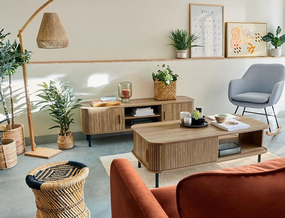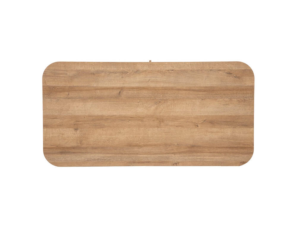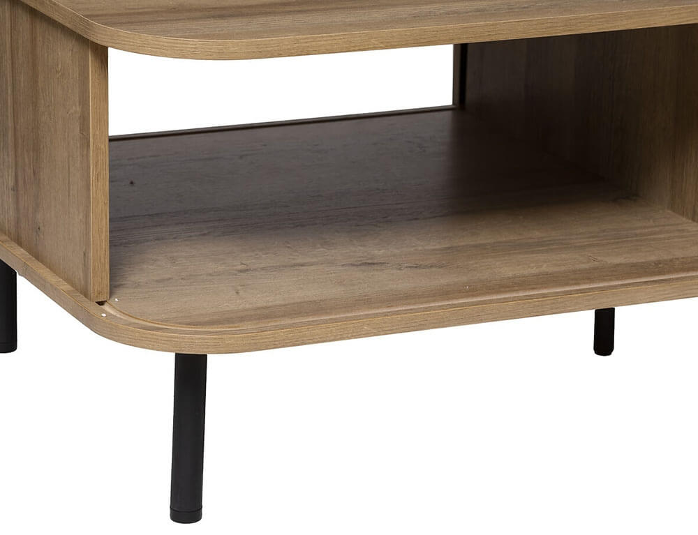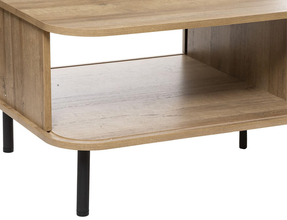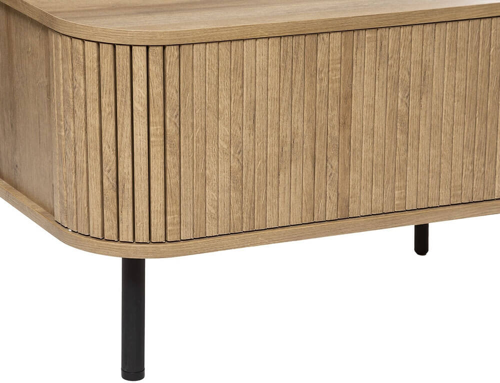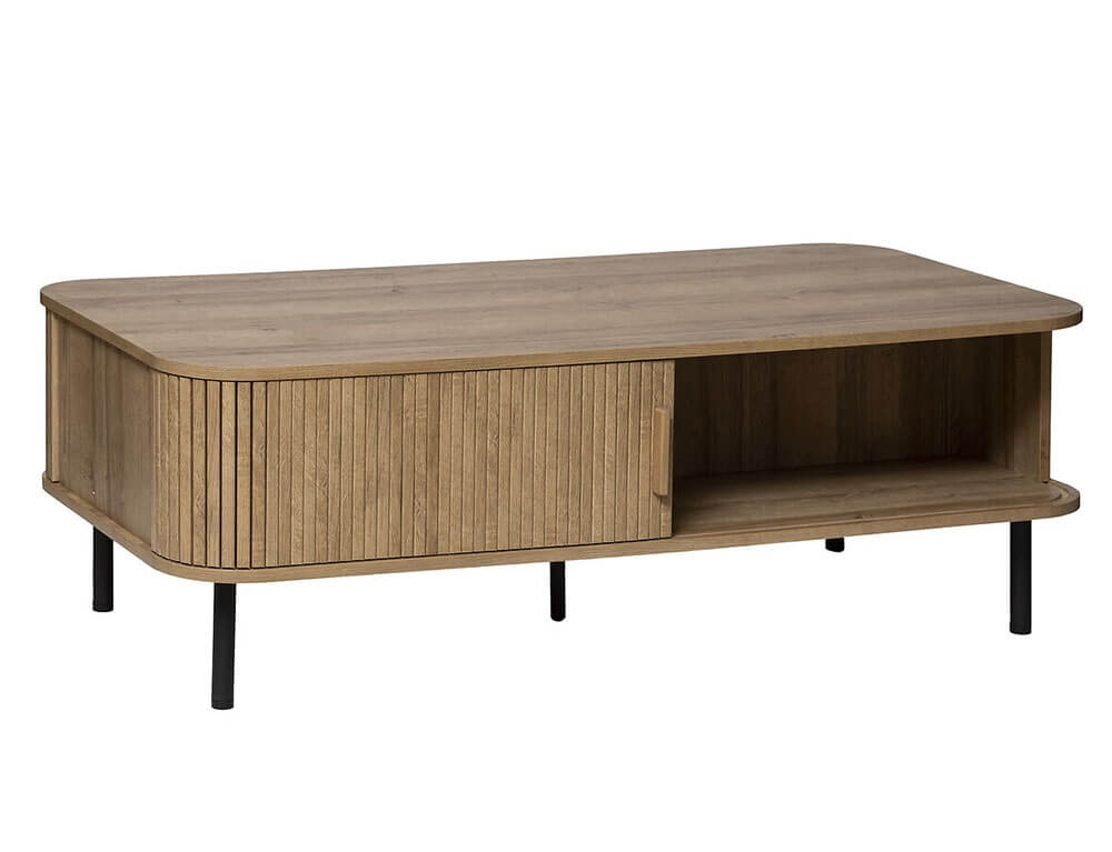 Το τραπεζάκι σαλονιού Colva από την Atmosphera συνδυάζει κομψό σχεδιασμό με πρακτική λειτουργικότητα, προσθέτοντας μια αίσθηση πολυτέλειας και μινιμαλισμού στο χώρο σας. Διαθέτει ένα συρτάρι και δύο ράφια για να διατηρείτε το χώρο σας οργανωμένο και τακτοποιημένο. Κατασκευασμένο με λεία στρογγυλεμένη κορυφή και σε εφέ από μασίφ φυσικό ξύλο, διαθέτει εντυπωσιακό σχέδιο με επένδυση με λεπτές, ευθείες γραμμές κατά μήκος του ντουλαπιού.