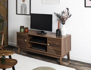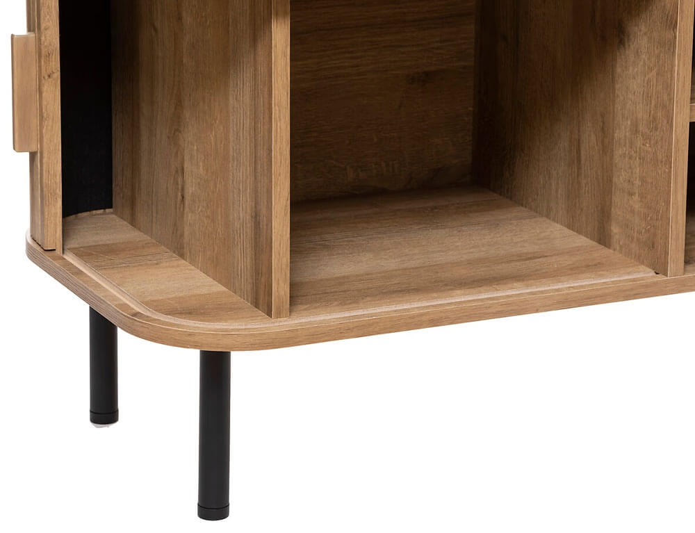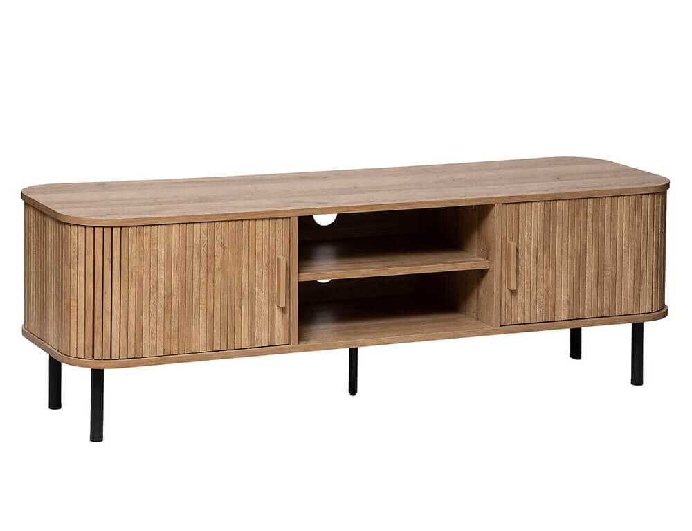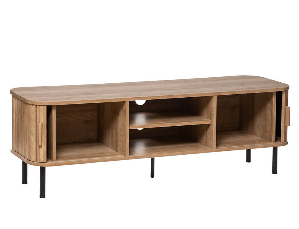 Ανανεώστε το χώρο σας με το έπιπλο τηλεόρασης Colva από την Atmosphera. Με μοντέρνο και μινιμαλιστικό design και λειτουργικότητα, το έπιπλο τηλεόρασης είναι η ιδανική επιλογή για κάθε σπίτι. Κατασκευασμένο με λεία στρογγυλεμένη κορυφή και σε εφέ από μασίφ φυσικό ξύλο, διαθέτει εντυπωσιακό σχέδιο με επένδυση με λεπτές, ευθείες γραμμές κατά μήκος του ντουλαπιού. Διαθέτει δύο ράφια και δύο ντουλάπια για να μπορείτε να αποθηκεύετε διάφορα αντικείμενα και να κρατάτε το χώρο σας τακτοποιημένο.