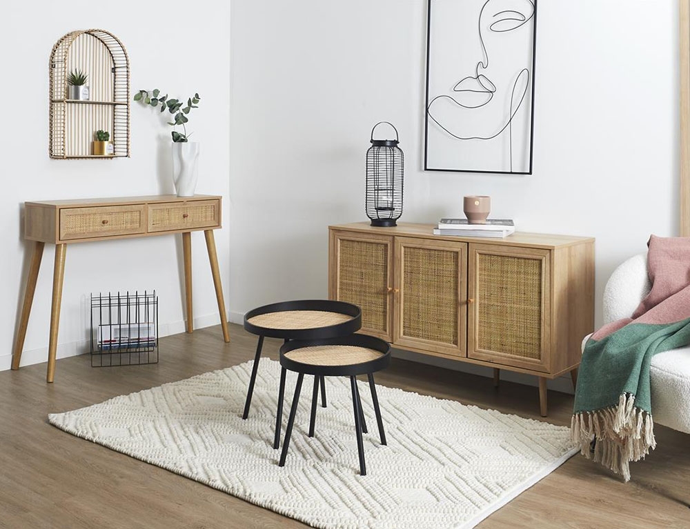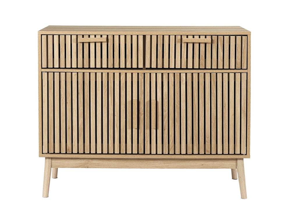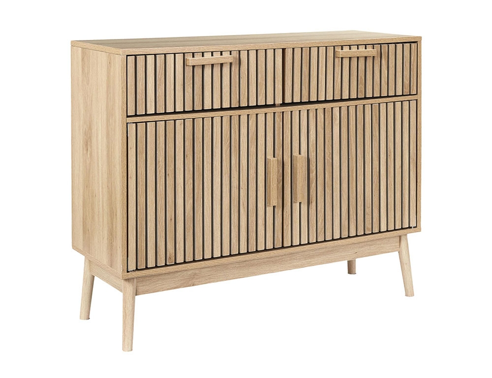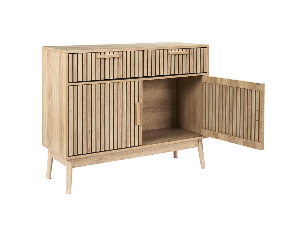 Διακοσμήστε και οργανώστε το χώρο σας με το μπουφέ Colva από την Atmosphera. Αποτελείται από 6 ράφια, όπου μπορείτε να αποθηκεύσετε και να οργανώσετε ό,τι θέλετε. Τα ράφια καλύπτονται με δύο συρόμενες πόρτες. Συνδυάζεται ιδανικά με έναν καθρέπτη ή έναν διακοσμητικό πίνακα και διάφορα διακοσμητικά και θα δώσει μια αίσθηση κομψότητας στο χώρο σας. Κατασκευασμένος με λείες στρογγυλεμένες άκρες και σε εφέ από μασίφ φυσικό ξύλο, διαθέτει εντυπωσιακό σχέδιο με επένδυση με λεπτές, ευθείες γραμμές κατά μήκος των πορτών.